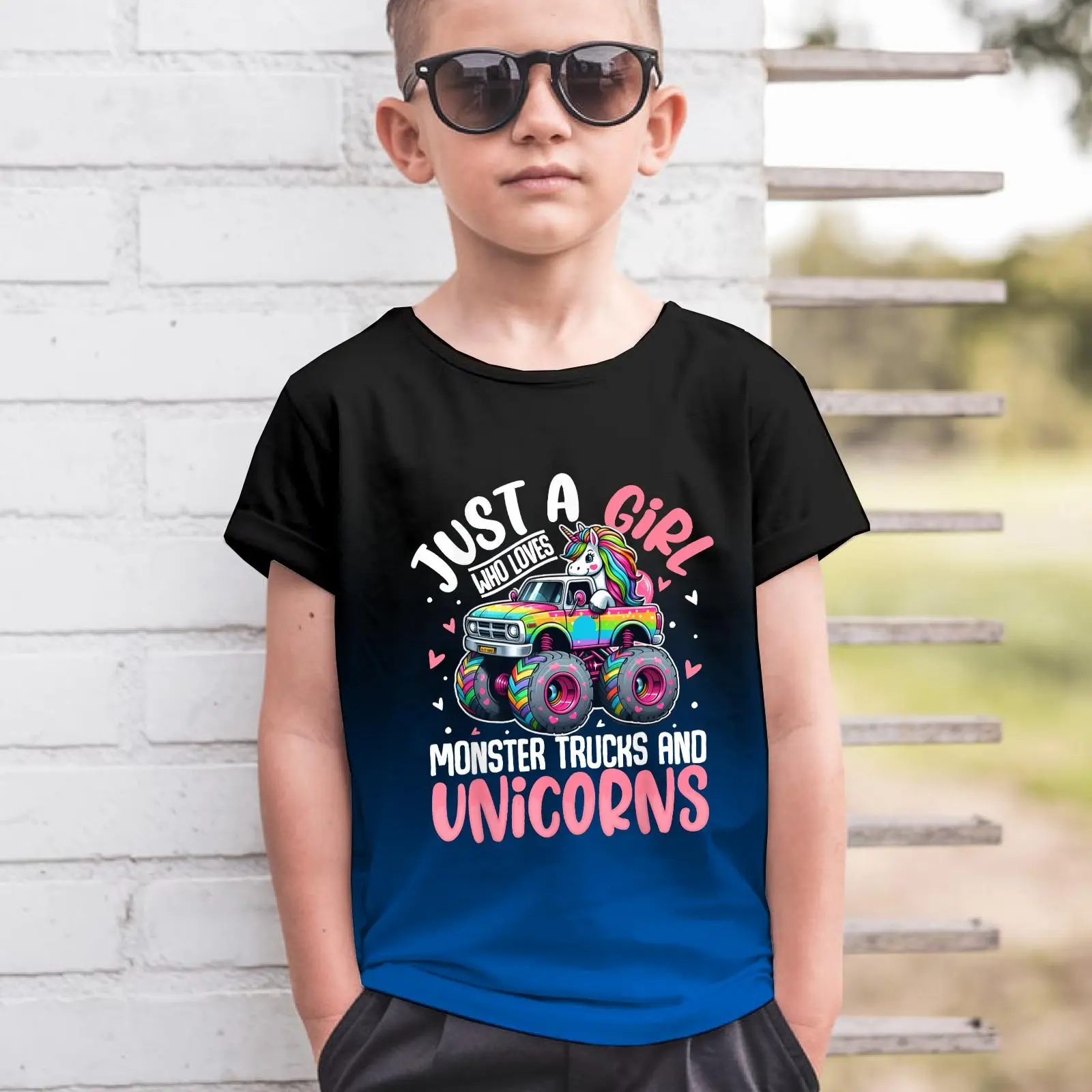 Just a Girl Who Loves Monster Trucks And Unicorns T-Shirt