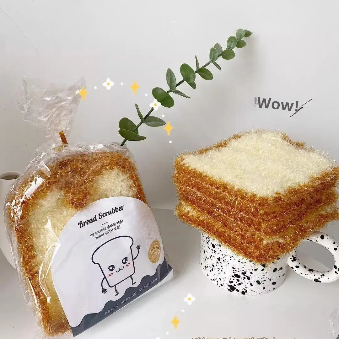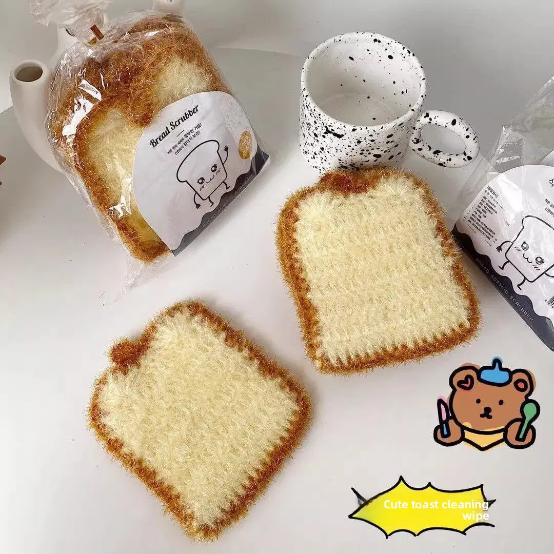 [1-3 pieces] Korean-style new toast bread dishcloth, bread-shaped bionic dishcloth, non-scratch pot cleaning cloth, thickened non-greasy dishwashing rag