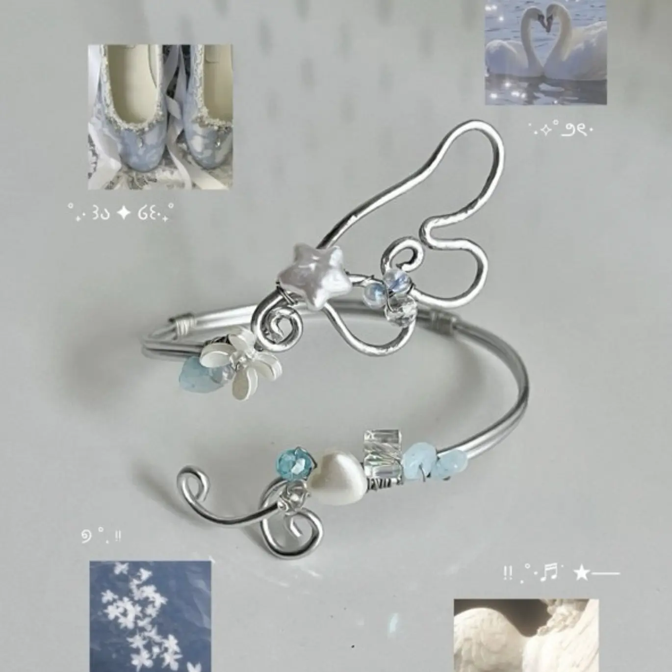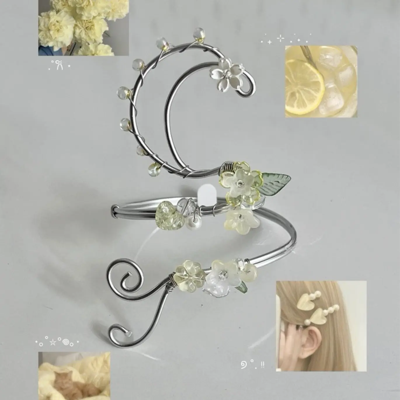 Each detail is carefully handcrafted, creating a light, ethereal composition that catches the light with subtle brilliance. The soft white palette evokes purity and calm, making it a timeless accessory that complements both modern minimalism and romantic, fairy-like aesthetics.