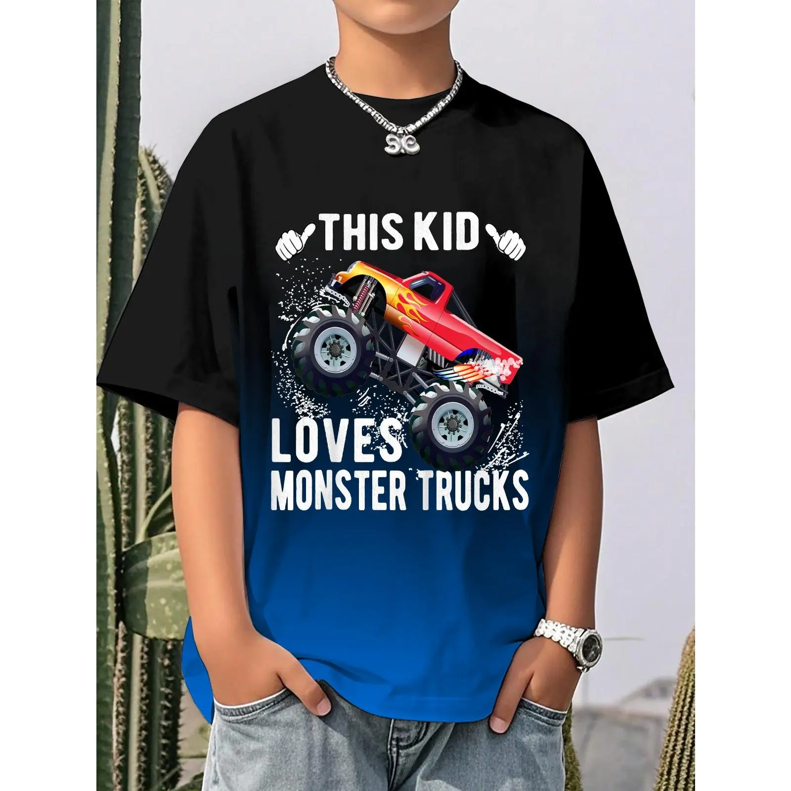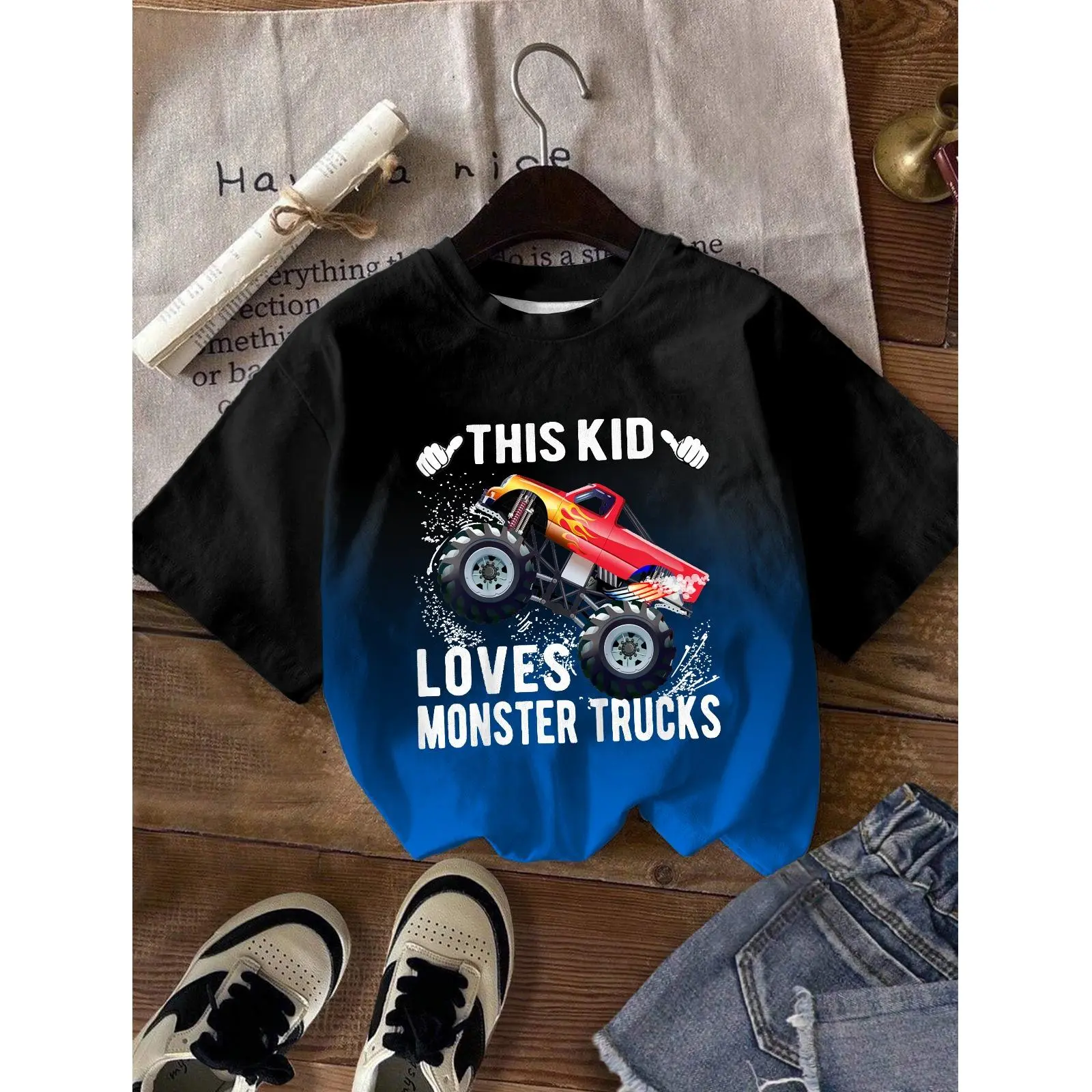 5. Kids This Kid Loves Monster Trucks Boys and Girls Gift T-Shirt