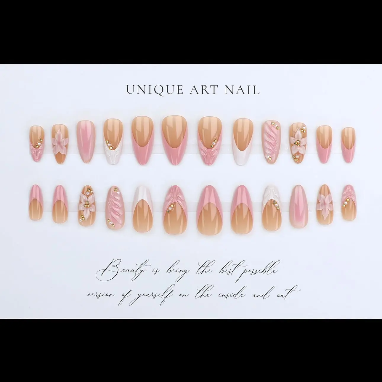 On Nail Kit: You will get 24pcs of high-quality salon style almond press on nails with 10 different sizes, you can choose the most suitable false nail for yourself, it is easy to trim and file them to in any length and shape you like.