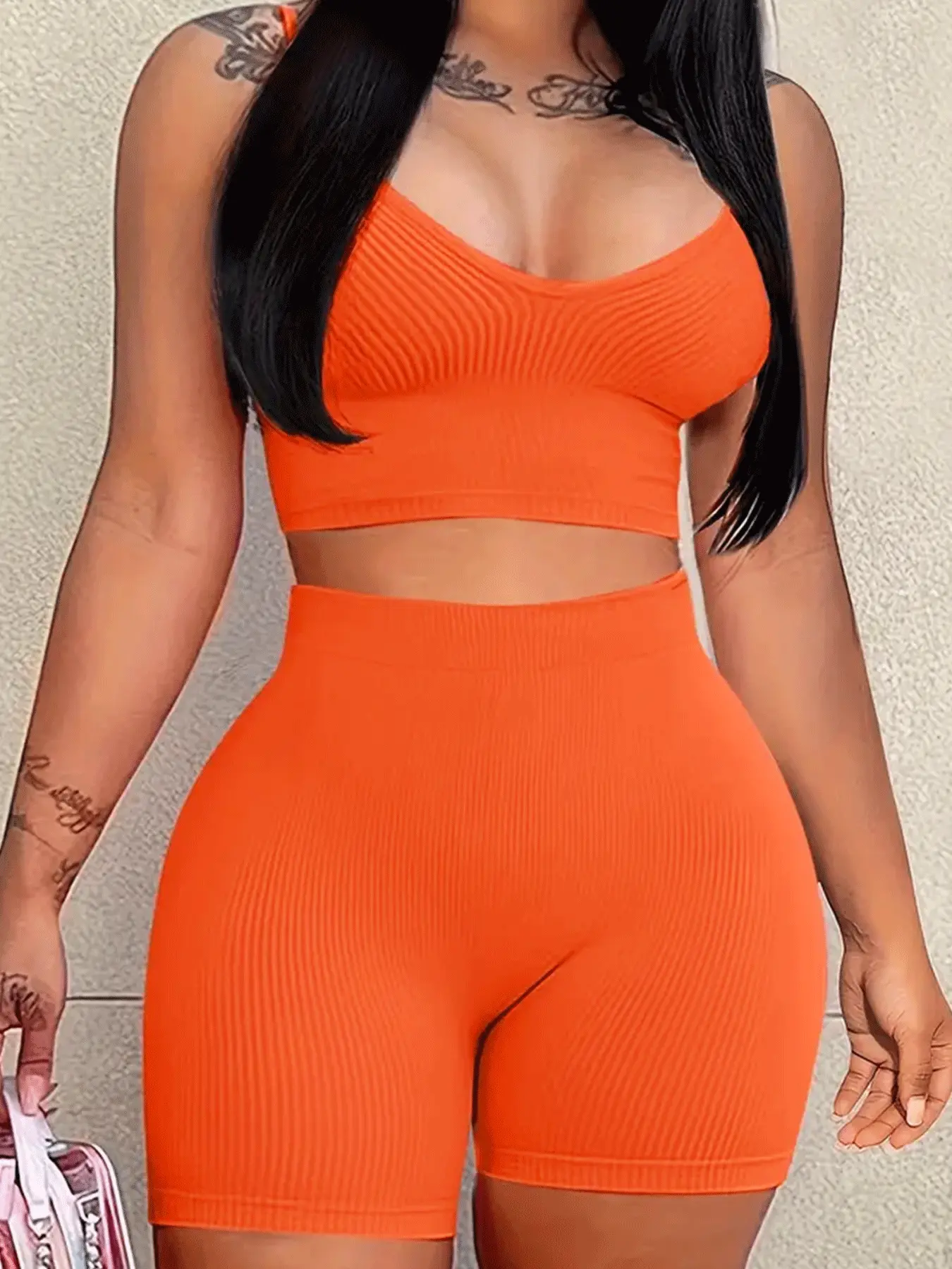 Casual set: best-selling women’s summer tank top and shorts two-piece with hip-lifting and tummy control; women’s summer clothing