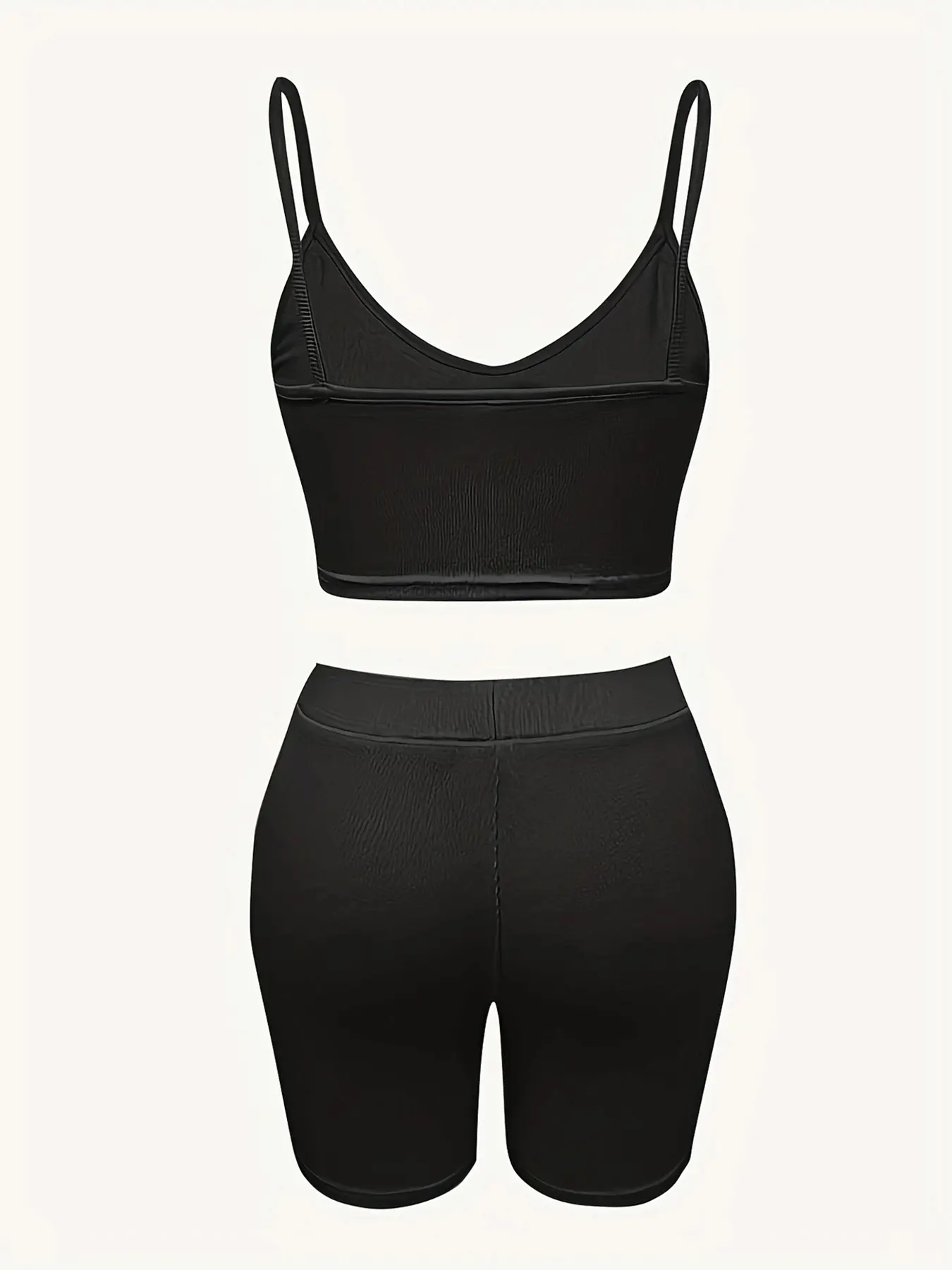 Adjustable waist cropped camisole top and elastic-waist fitted shorts, summer casual wear, women’s two-piece set
