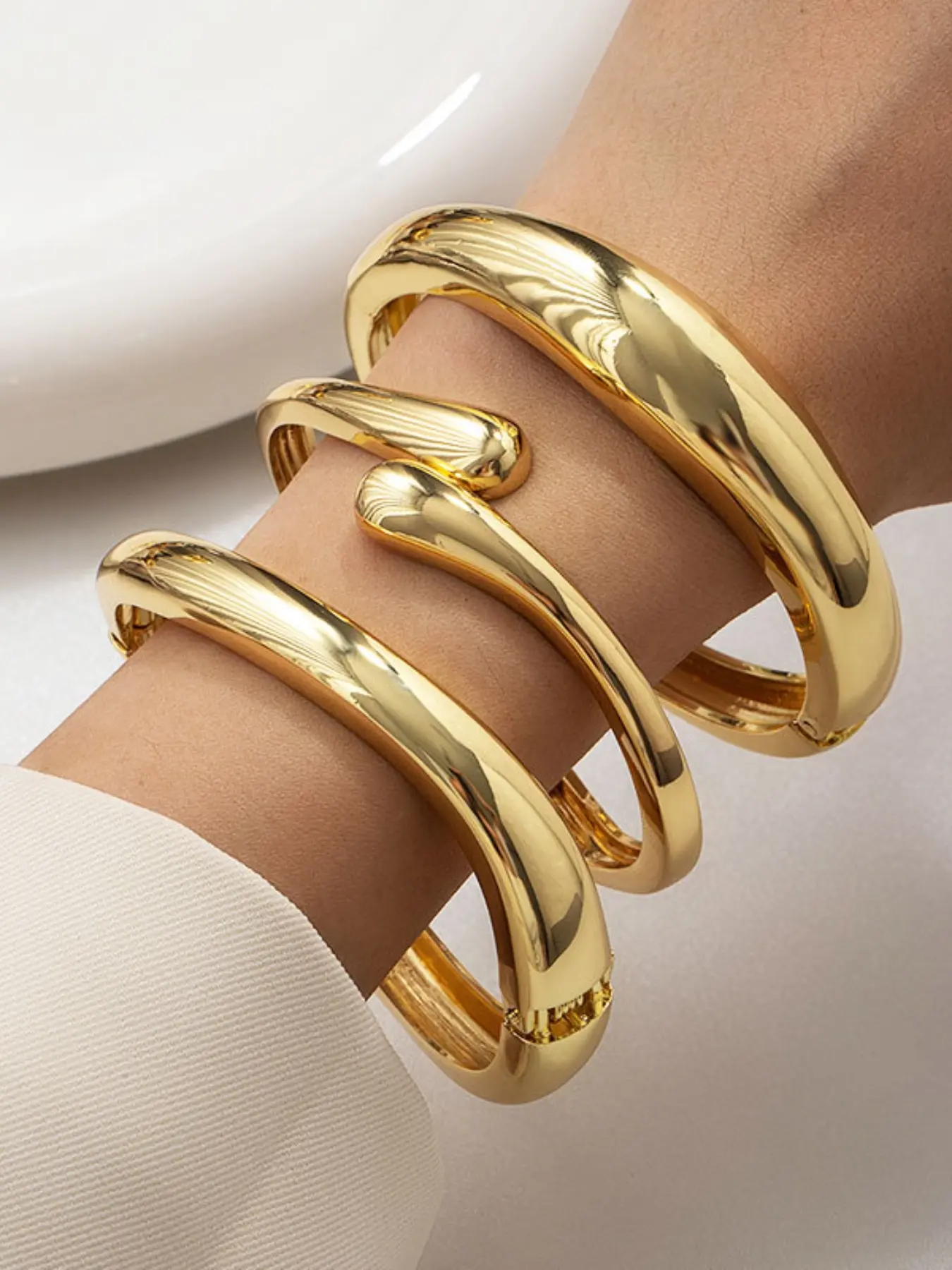 Gold Bangle Bracelet Set for Women, Chunky Gold Cuff Bangle Stackable Bracelets, 6cm Inner Diameter Fits 16-18cm Wrist, Statement Wrist Jewelry for Daily Wear, Perfect Birthday Gift for Her