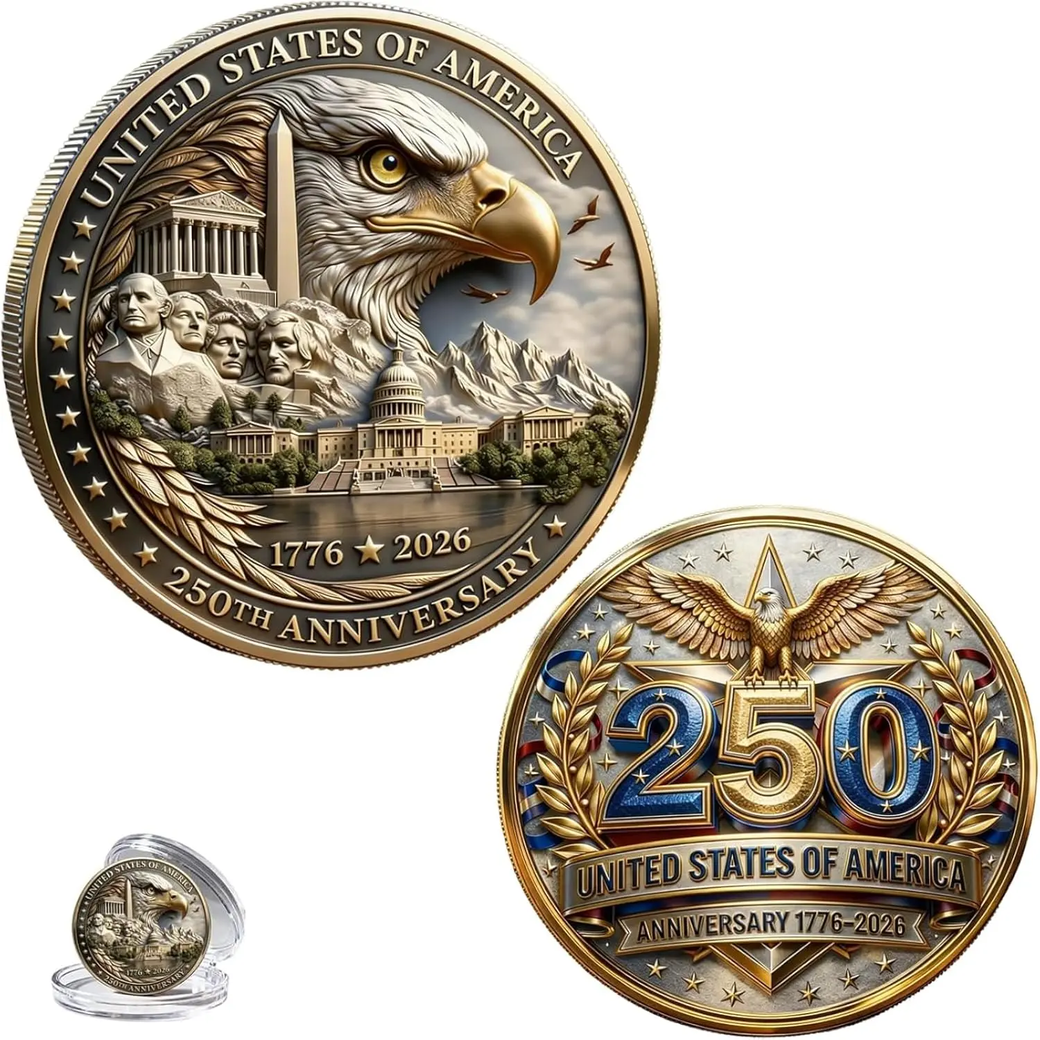 ·Celebrate the U.S. 250th Anniversary with this exclusive commemorative coin, a perfect July 4th Independence Day keepsake. Featuring a majestic eagle and the historic 1776–2026 date, this high-quality collectible is ideal for patriots, history lovers, and collectors to honor America’s 250-year heritage.