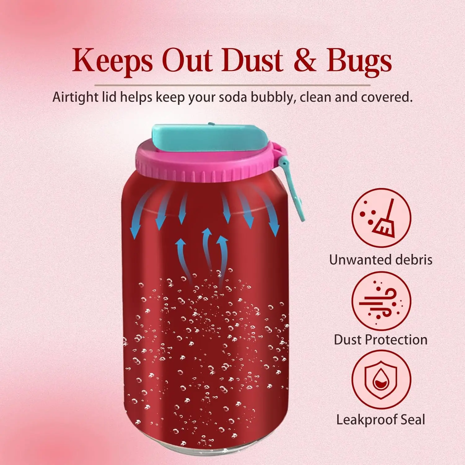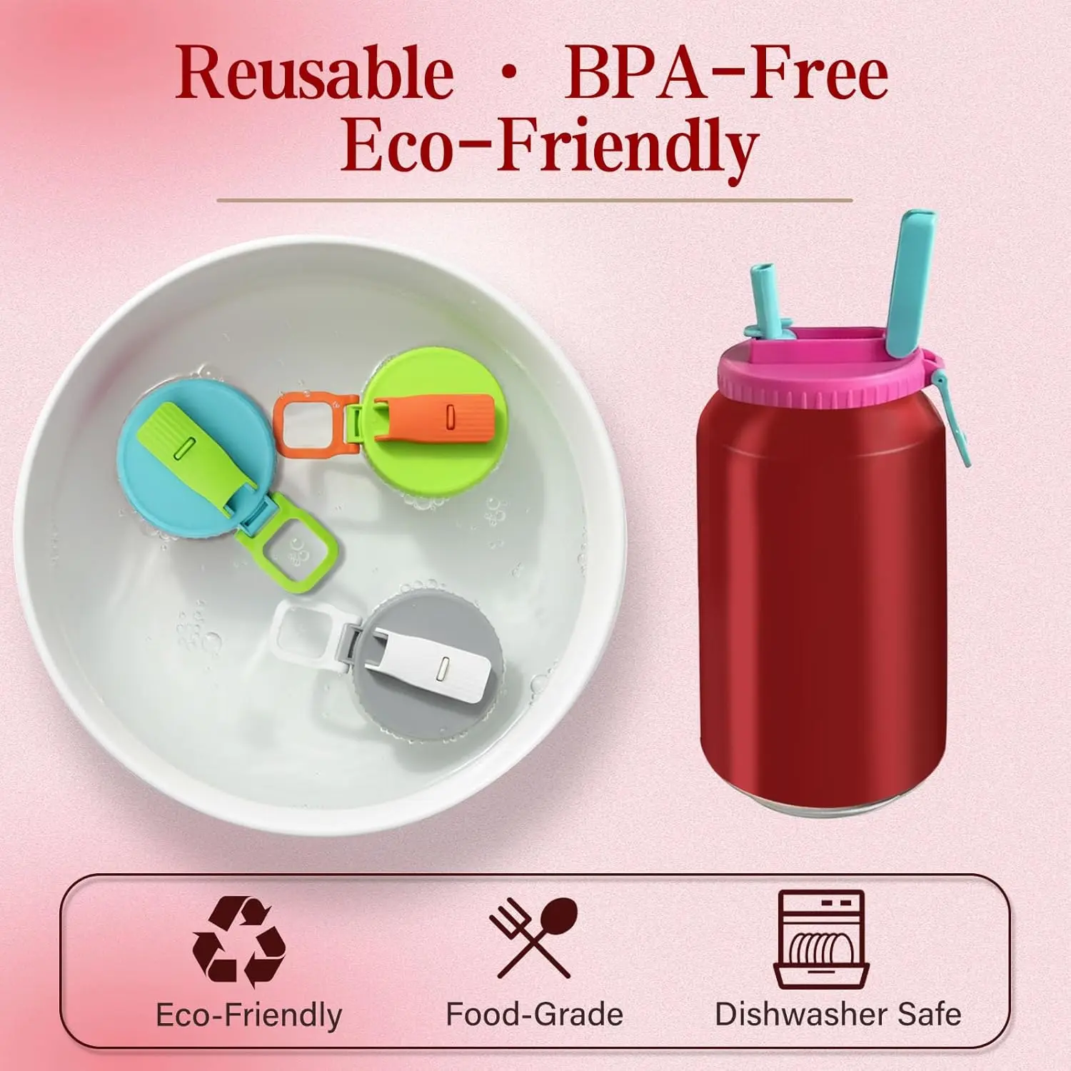 Soda Can Lids with Silicone Straw, Reusable Soda Can Covers to Keep Carbonation, Leak-Proof BPA-Free Can Tops for 2.13" Standard Soda, Beer & Energy Drink Cans, 4 Pack