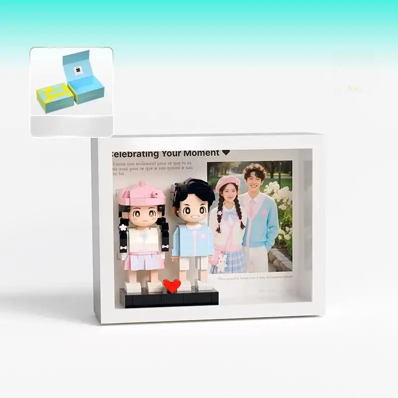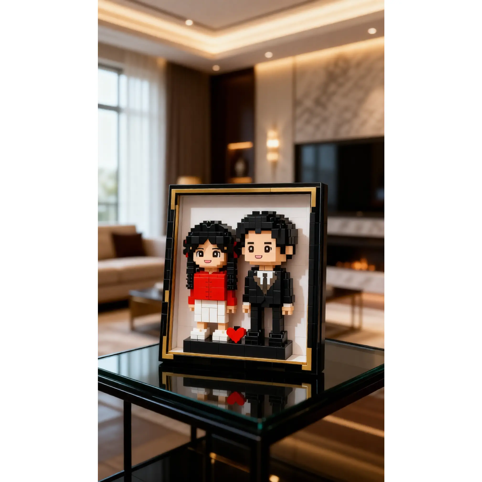 The DIY portrait building block figurine takes customization to the next level. Using high-definition printing technology, we replicate your portrait details - from facial features to clothing styles - on to the building blocks. The set comes with clear, easy-to-follow instructions, allowing you to assemble it yourself, infusing every piece with love and intention. It's a fun DIY activity that lets you create a one-of-a-kind hand figurine that looks just like you two, making it extra meaningful.