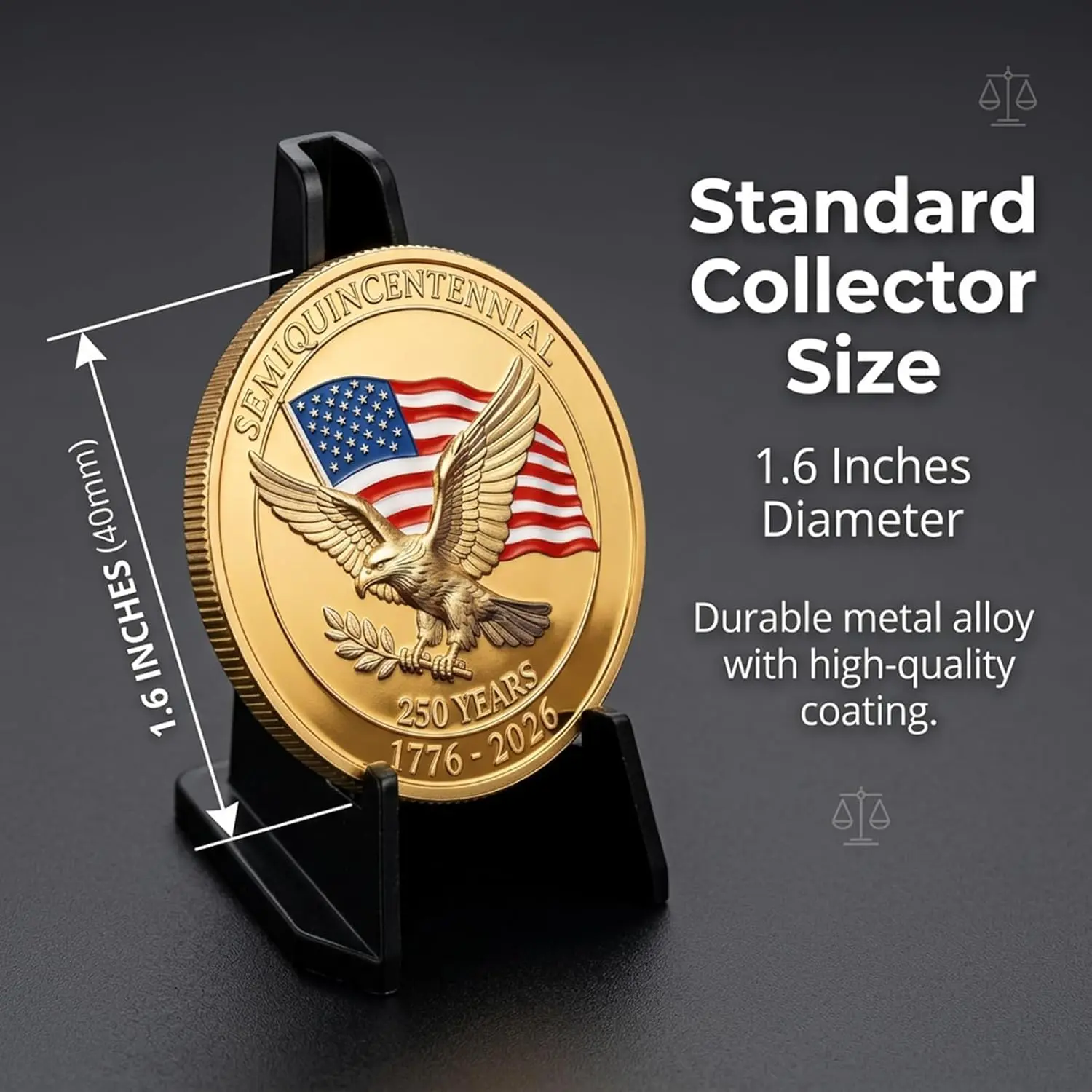 ·Premium craftsmanship ensures long-lasting display. This USA 250th anniversary collectible is made of durable metal with polished finish and exquisite details. It serves as a timeless 250 year American anniversary keepsake that can be passed down for generations.