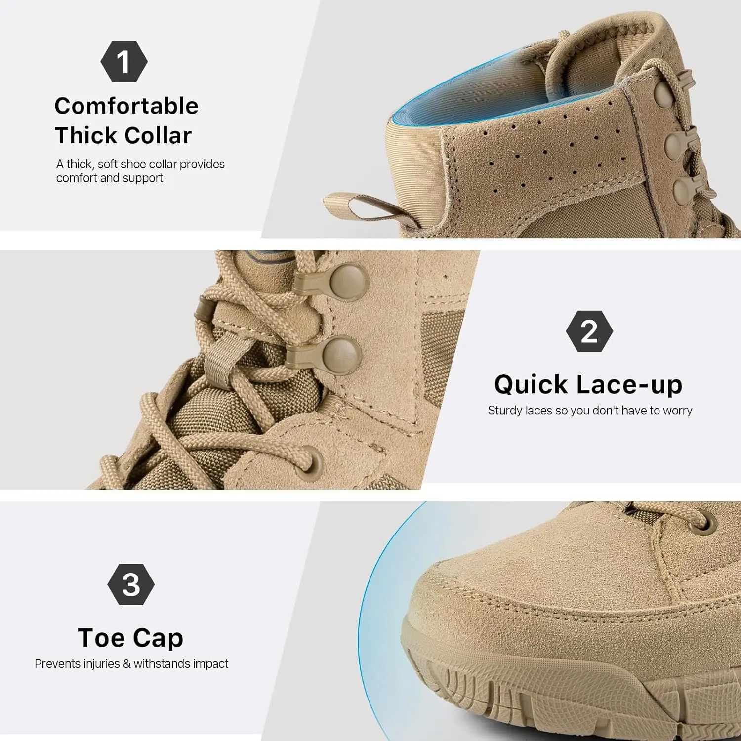 FREE SOLDIER Men's Durable Work Boots 6 Inches Lightweight Waterproof Hiking Boots Suede Leather Tactical Boots