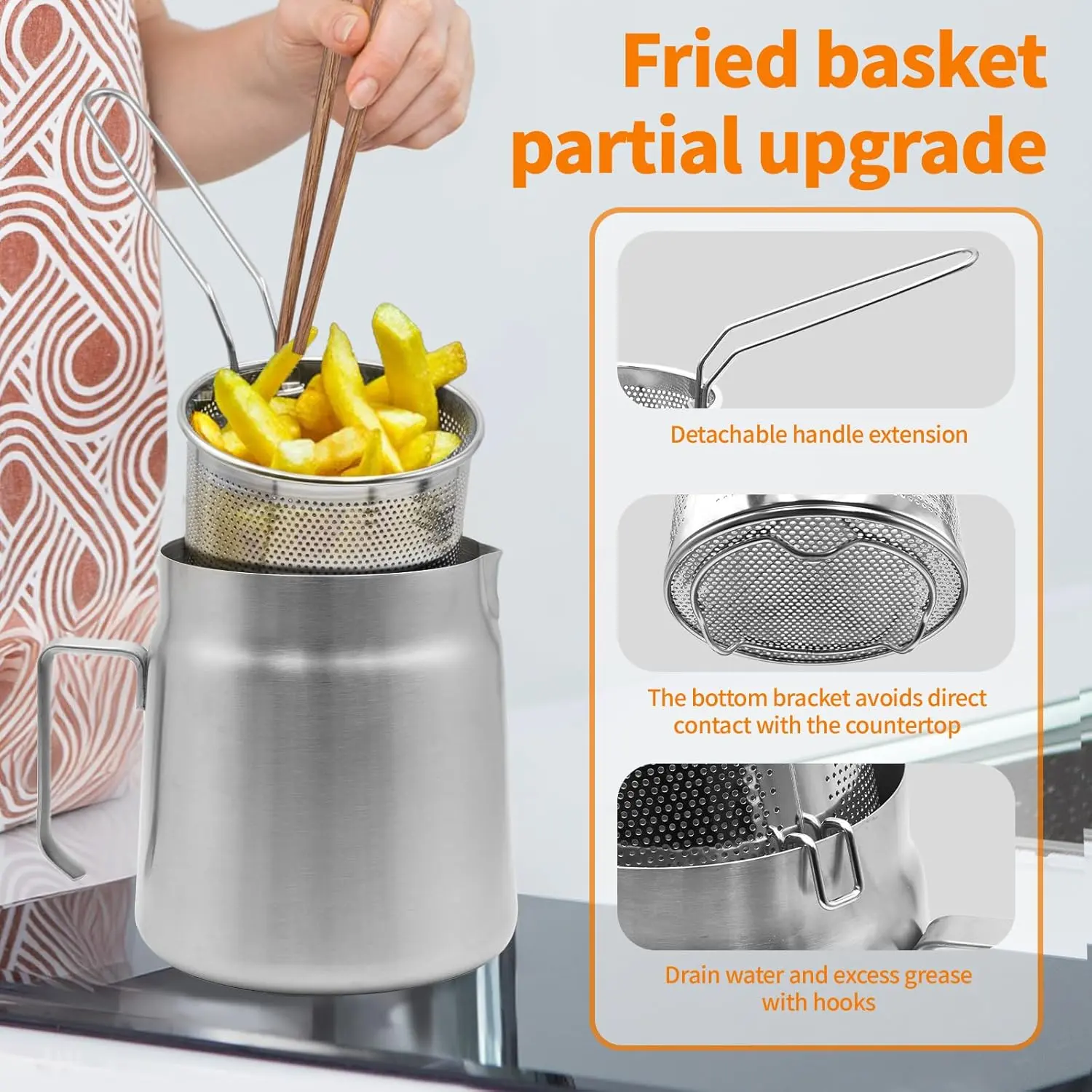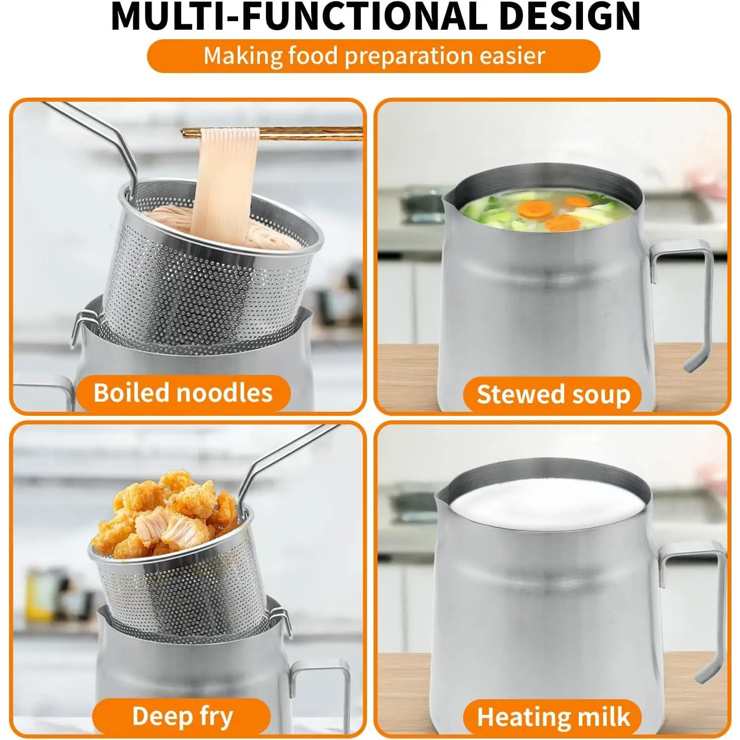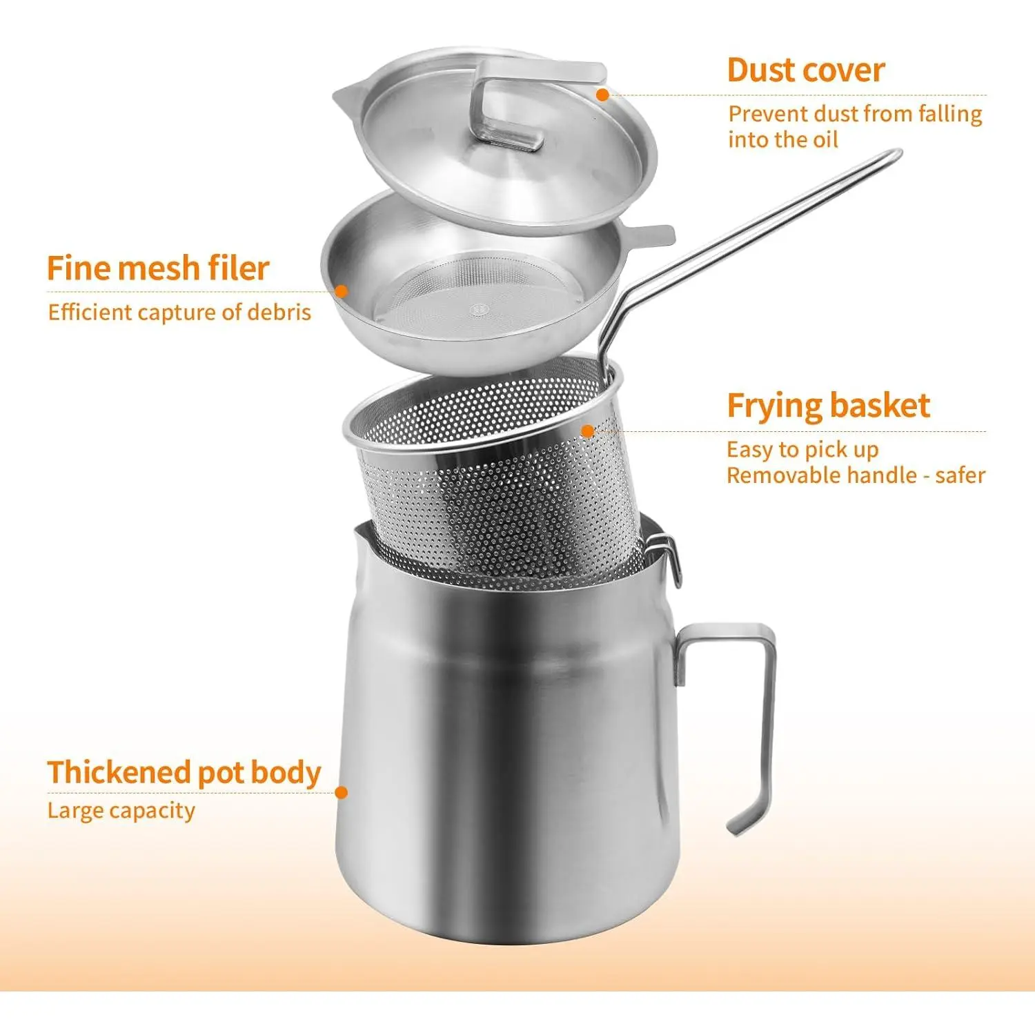 68oz Stainless Steel Oil Filter Pot with Deep Fryer Basket - Kitchen Large Capacity Versatile Oil Strainer Vessel and Bacon Grease Saver for Cooking Grease