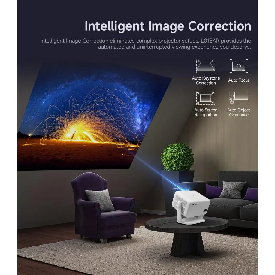 X3AR Smart Projector with WiFi 6 and Bluetooth 5.4, 4K Support 600 ANSI Native 1080P Portable Mini Projector with Android 14 OS Auto Focus & Keystone, 270° Rotatable for Bedroom Home Theater Outdoor Movie White&Gray