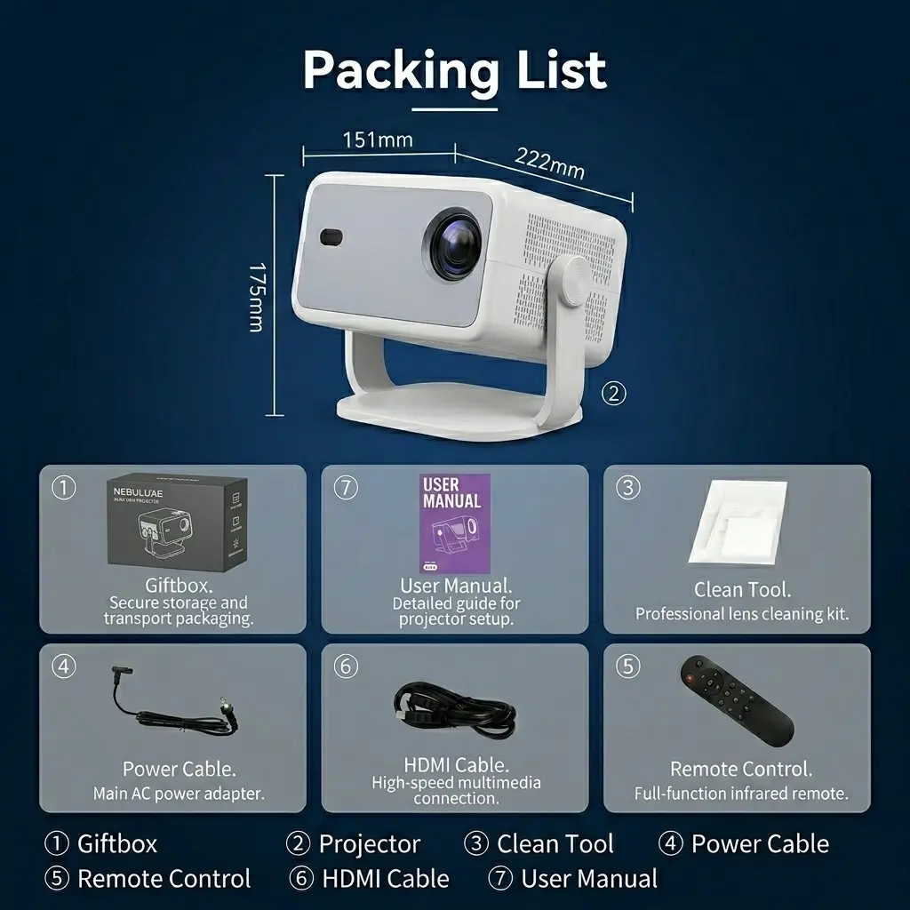 Native 1080P 8K Supported Projector | 1400 ANSI Smart Projector with Android 14, WiFi 6 & Bluetooth 5.4, Auto Focus/Keystone, 200" Display for Home & Outdoor
