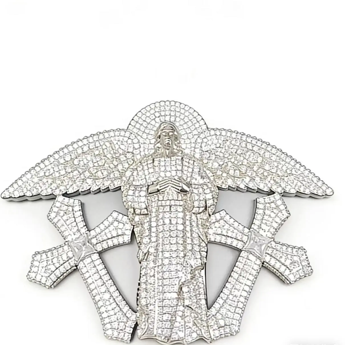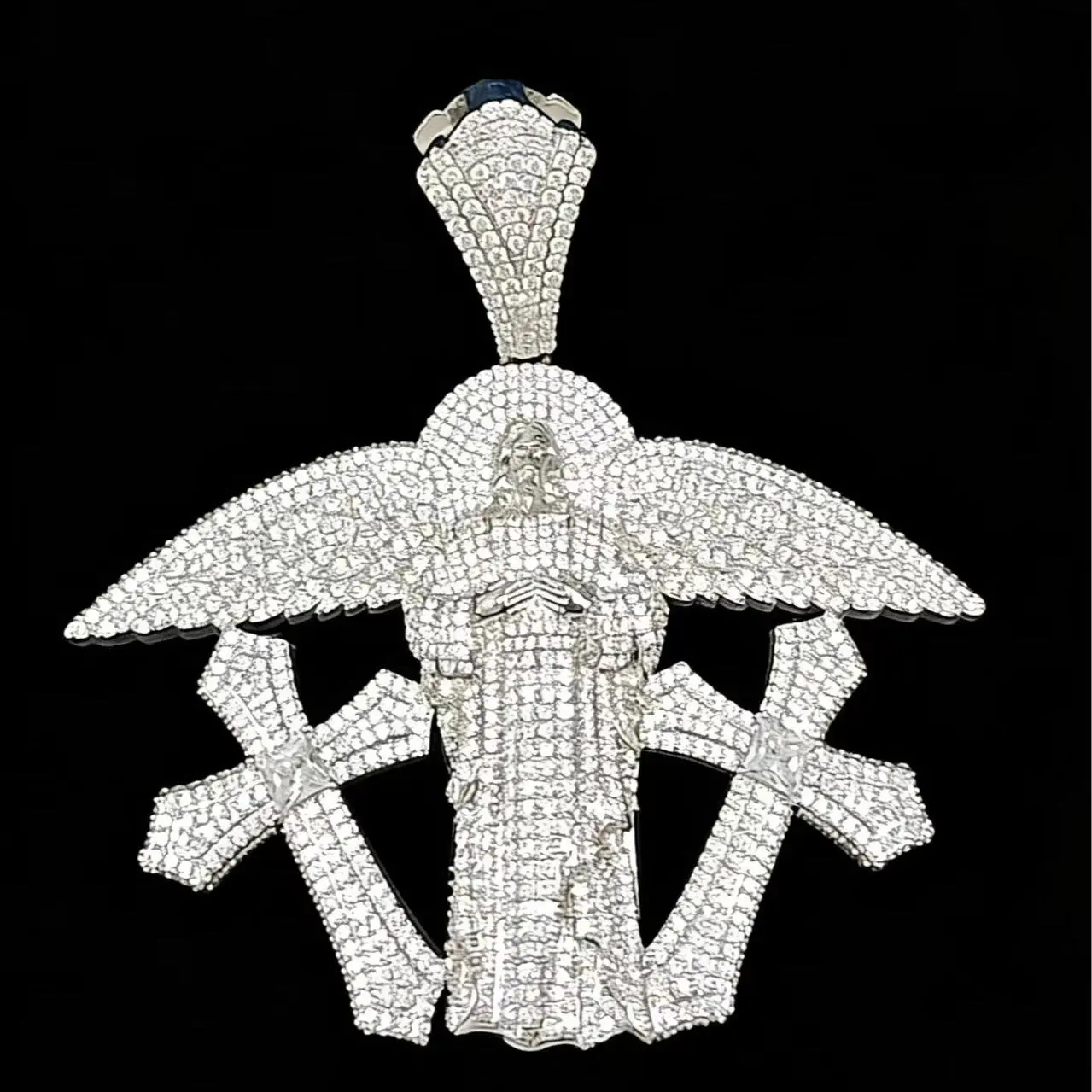 M2-2352 Stay Frosty Angel Jesus Cross Pendant Bold Iced-Out Statement Piece for Unique Accessories