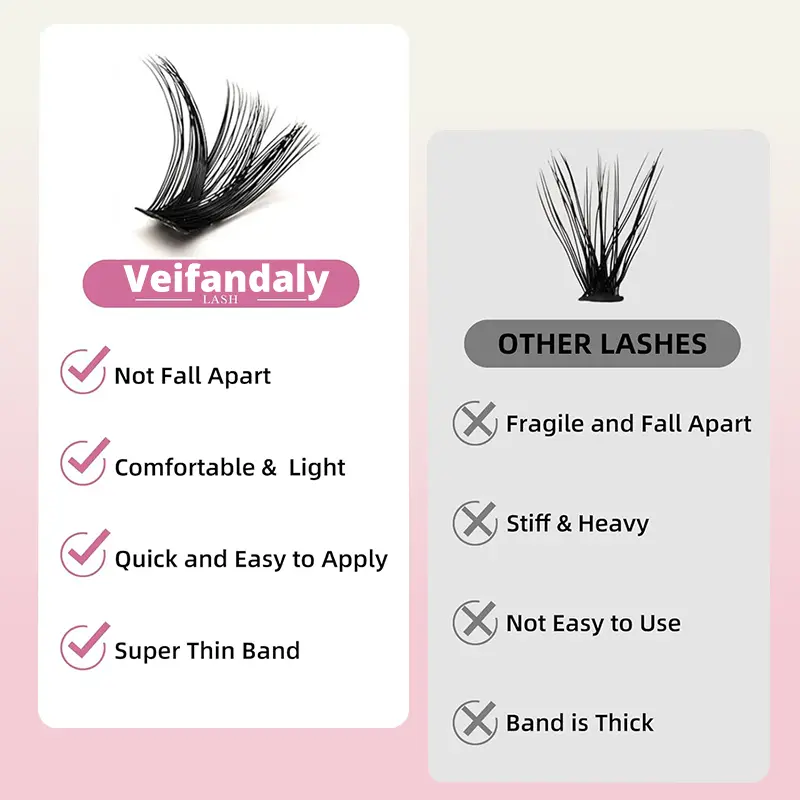 Long-Lasting & Reusable Lash Clusters: Veifandaly eyelashes clusters are user-friendly and perfect for beginners and makeup lovers alike. When cared for properly, these durable lash clusters can be reused 3-5 times, providing excellent value and versatility.