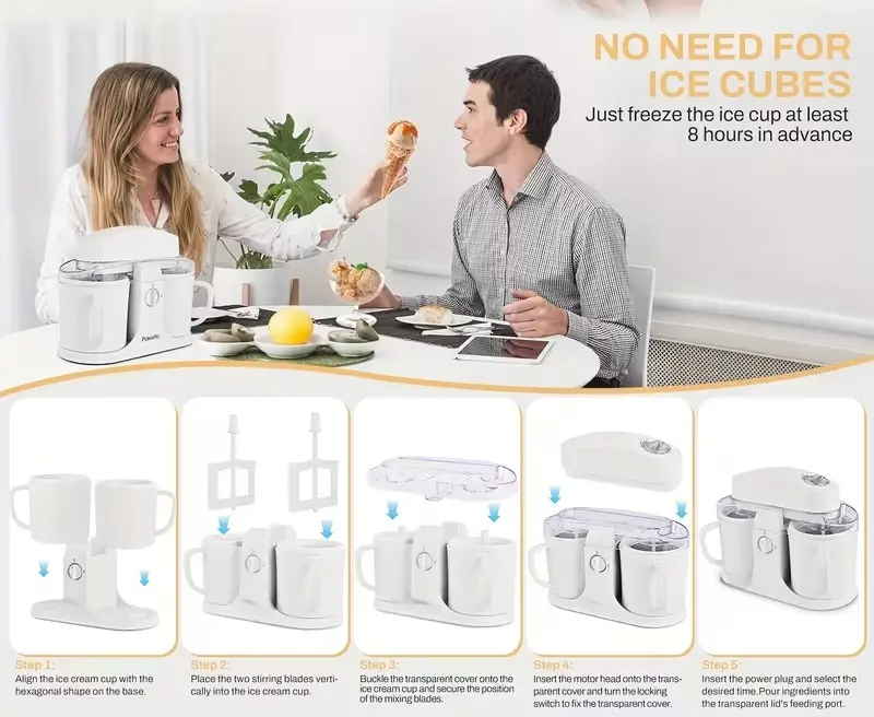 This machine features simple operation, perfect for home use. Detachable bowls make serving effortless and ensure quick, hassle-free cleaning. It's suitable for ice cream, frozen yogurt, and smoothies. Deliver smooth, delicious results every time. It also makes a great gift for holidays and special occasions.