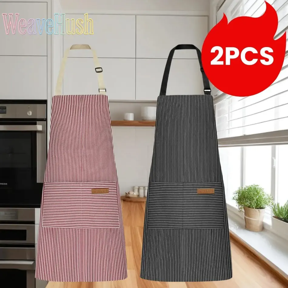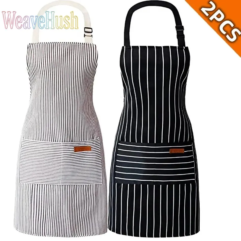 2-Pack Kitchen Cooking Aprons for Women & Men, Adjustable Chef Apron with Large Pockets & Convenient Buckle Strap, Comfortable Waterproof Oil-Proof Bib Apron for Home Cooking, Baking, Grilling, BBQ, Dishwashing & Commercial Restaurant Use