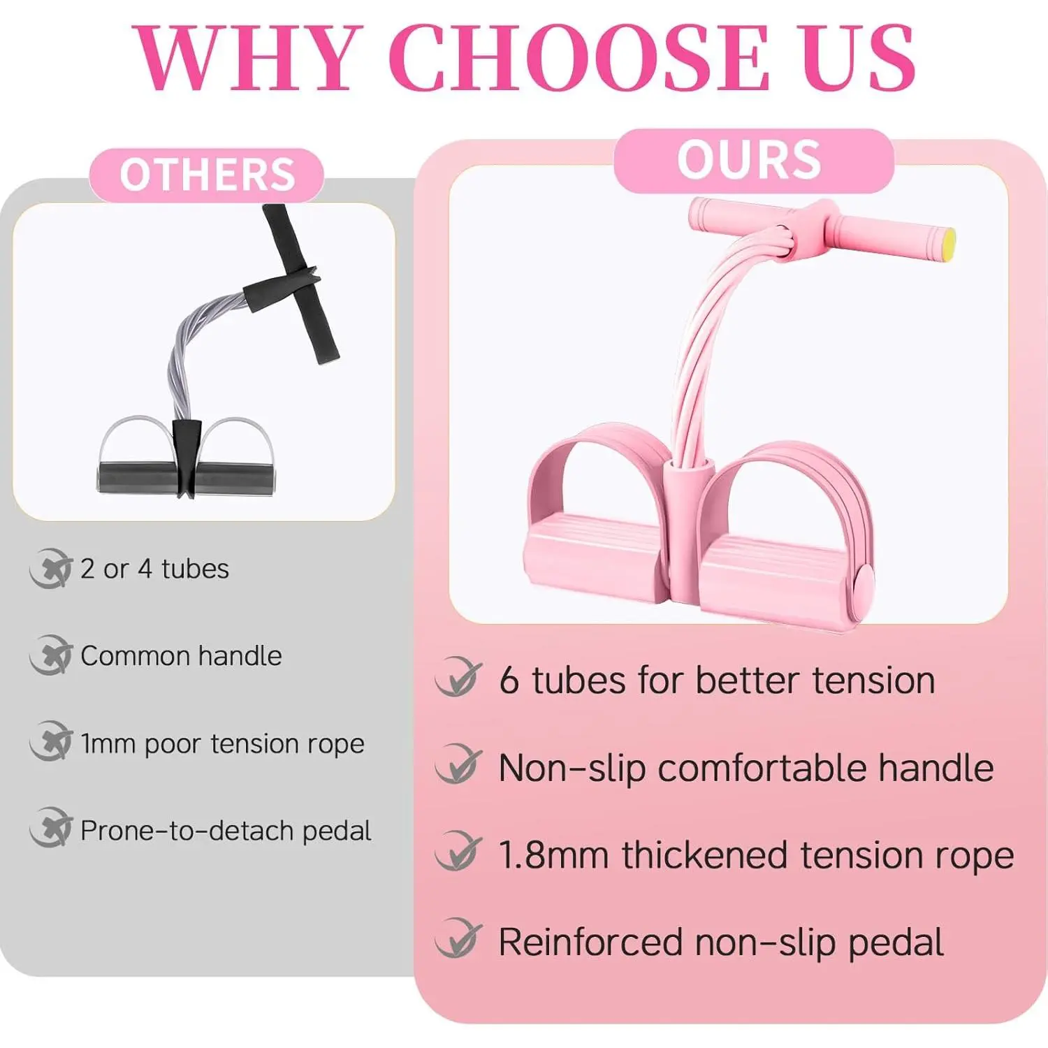 Foot pedal resistance band with handle – six-tube design, 50 lbs pull, natural rubber material; specially designed for…