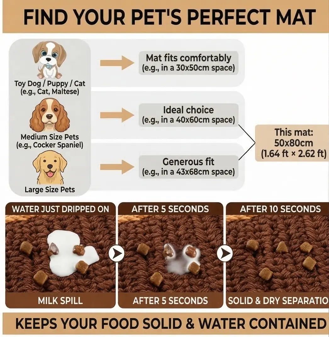 ·Great as a pet feeding mat, dog door mat, or cat kneading mat - catches spills, mud, and paw prints effortlessly