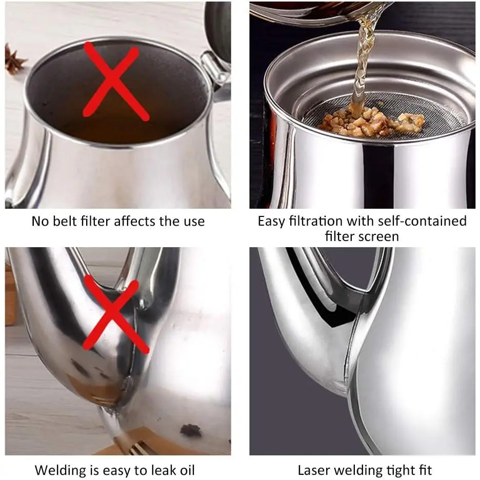 Stainless Steel Oil Filter Pot with Mesh,Kitchen Grease Container with Handle and Long Narrow Spout for Precision Pouring for Storing Frying and Cooking Grease(SIZE:24oz)