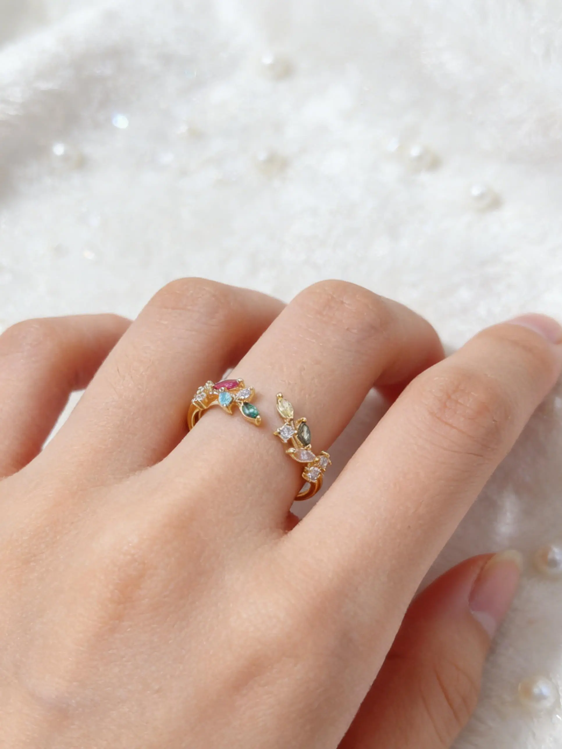Fashion Micro-Set Colorful Zircon Leaf Ring for Women, Simple and Versatile Open Adjustable Band, Elegant Jewelry Accessory
