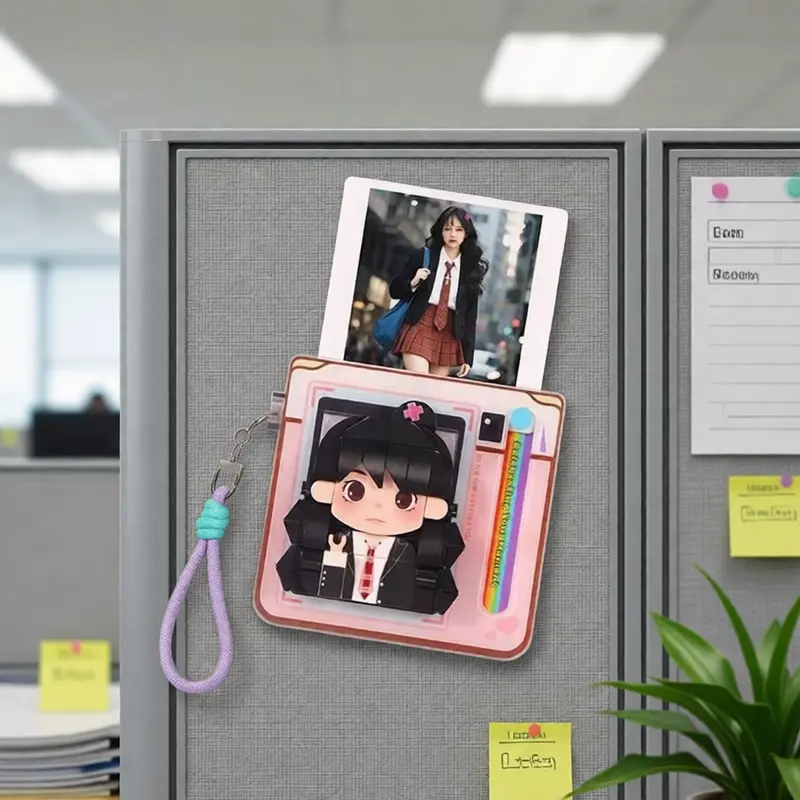 This versatile frame doubles as a strong magnetic decor, effortlessly sticking to refrigerators, whiteboards, or any metal surface to turn your kitchen or workspace into a warm, personal gallery. It also features a clever openable design, letting you slide in a real 3-inch polaroid photo for a double dose of nostalgia, pairing the stylized art with your actual memory. Complete with a trendy, detachable woven lanyard, it transforms into a stylish bag charm or keychain, so you can carry your favorite people with you everywhere you go.