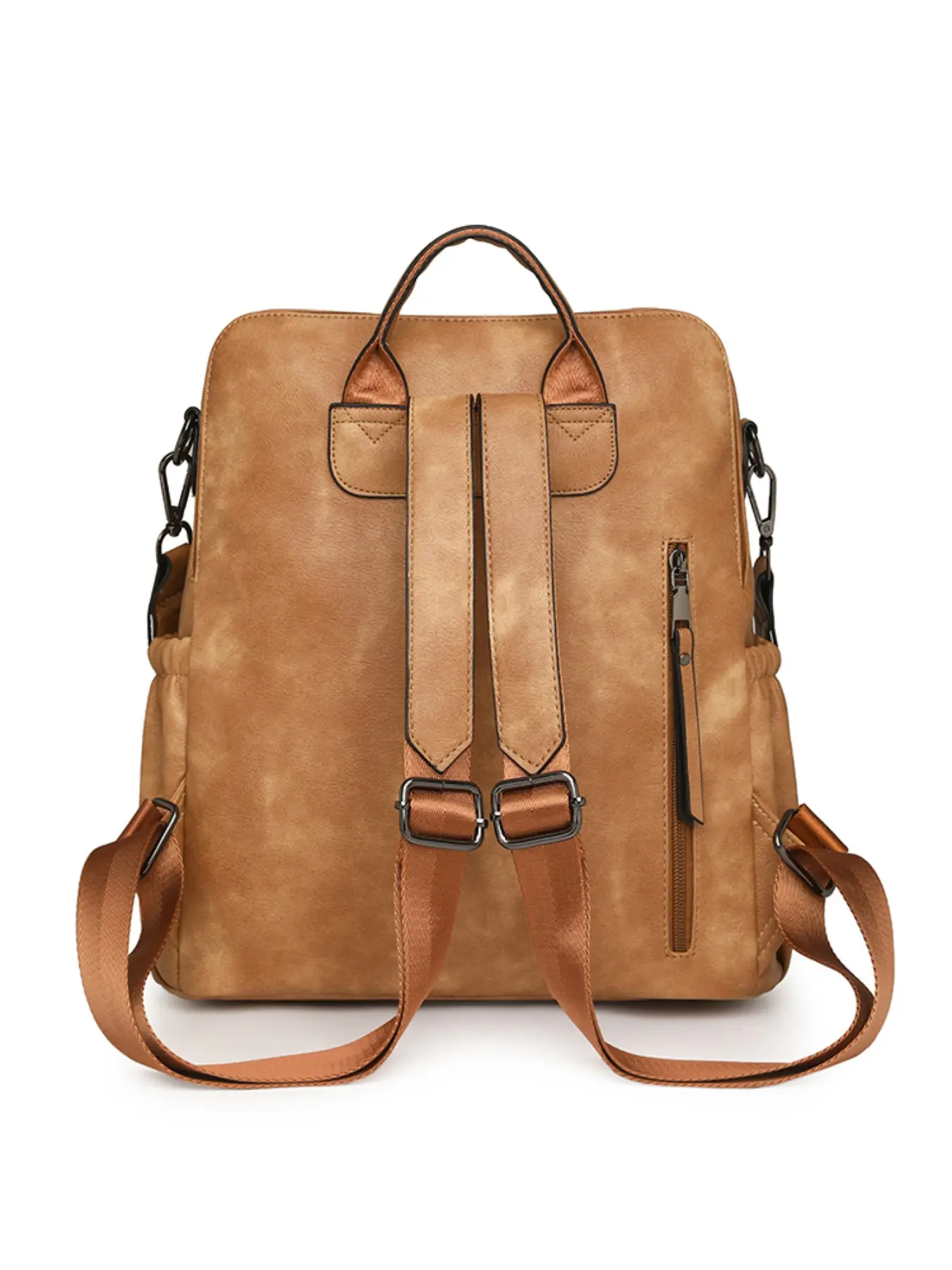 Vintage PU Small Backpack, Outdoor Leisure Travel Crossbody Bag, Women's New Two-In-One Shoulder Bag, Fashionable and Durable, Multi-Pocket Design