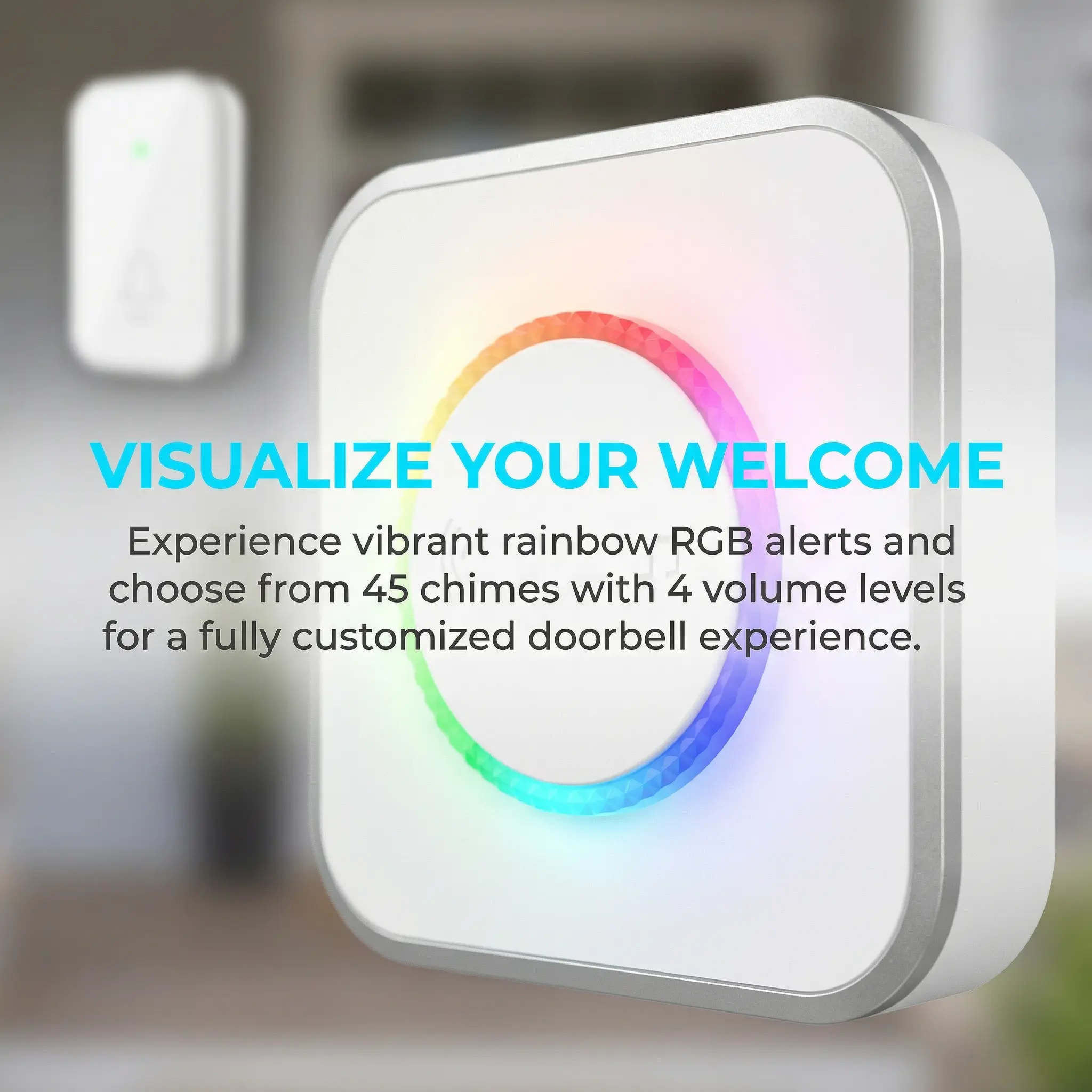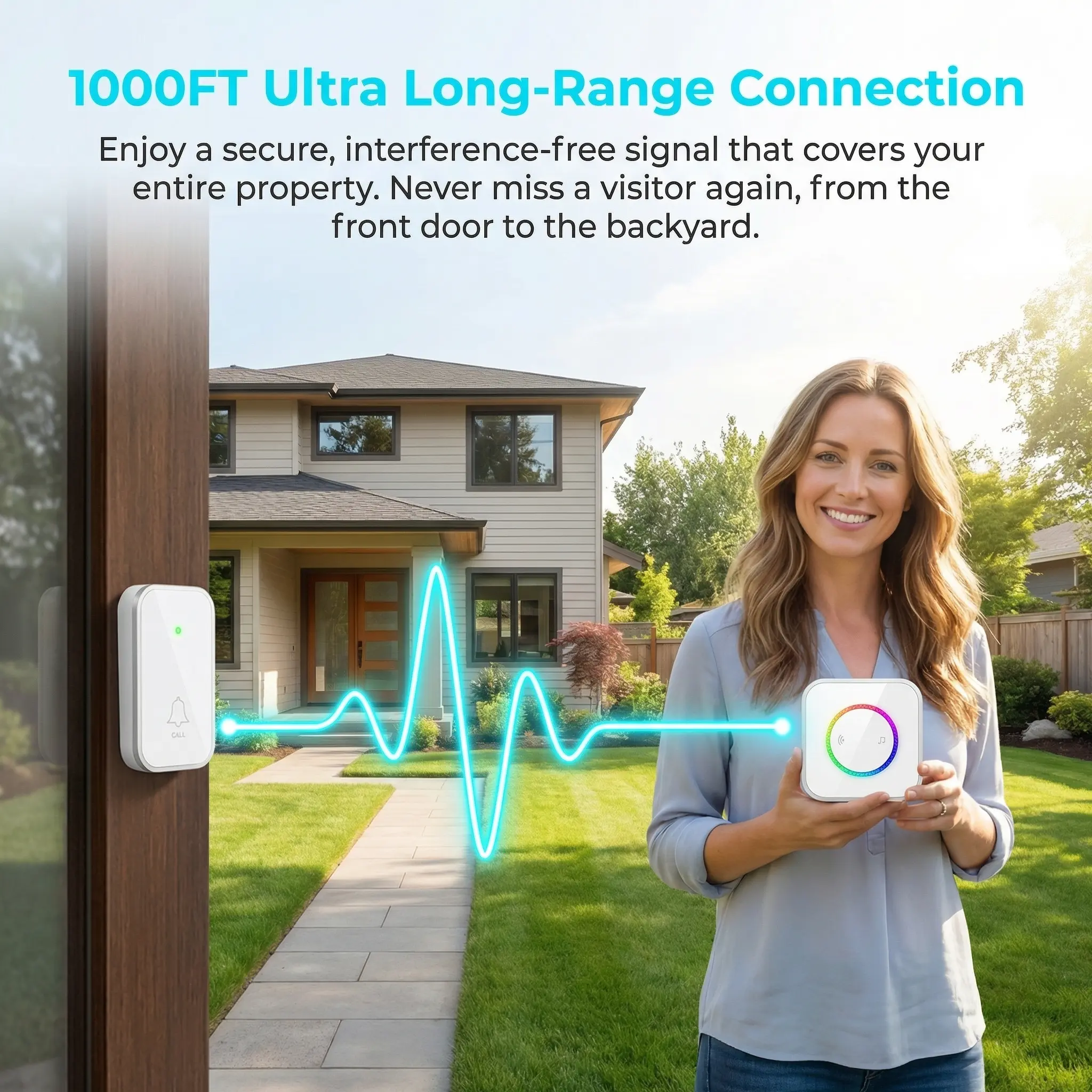 Wireless Doorbell, Waterproof Door Bell Ringer Wireless 1000ft Range, 45 Chimes 3 Volume Levels LED Flash, Door Bells & Chimes for Home/Classroom/Office