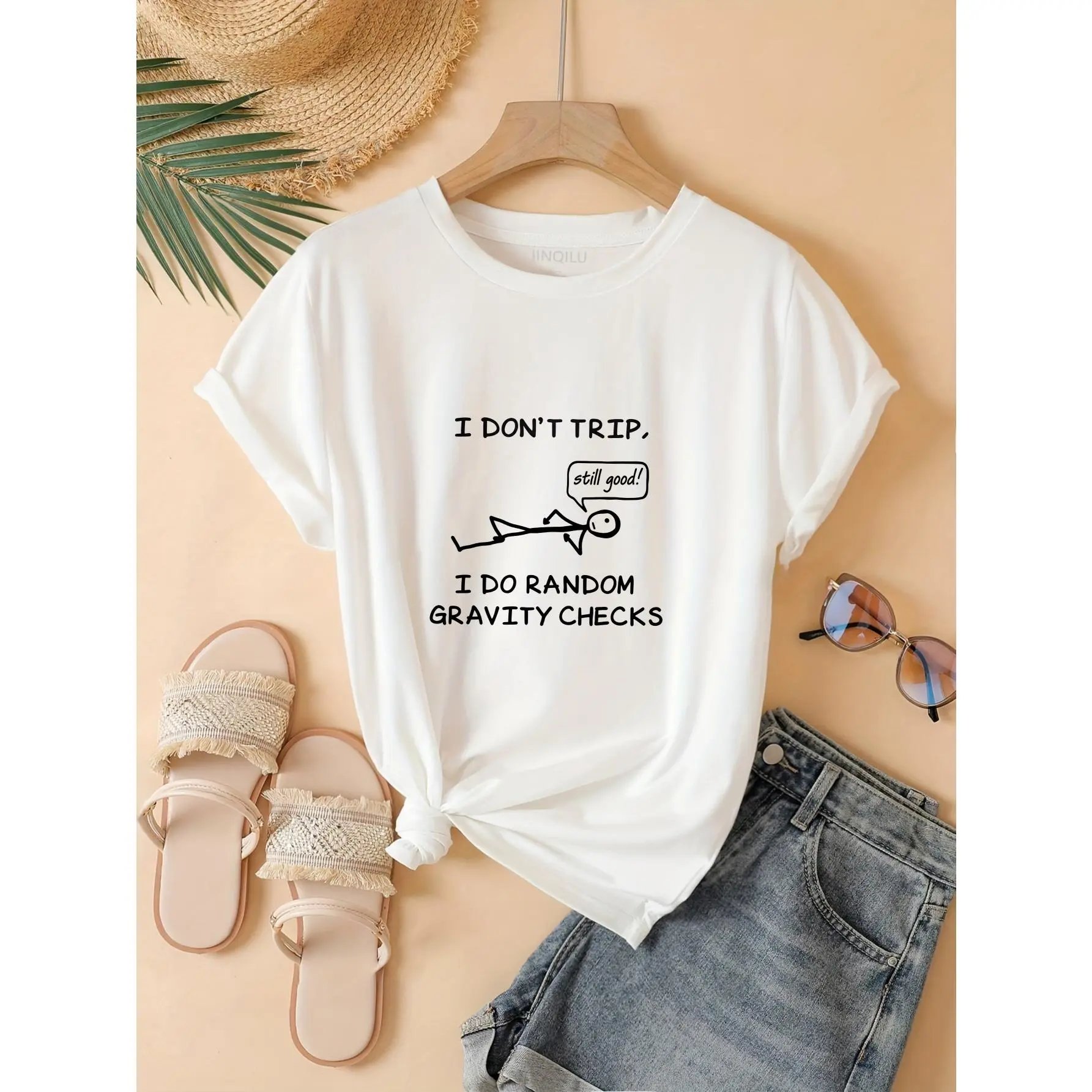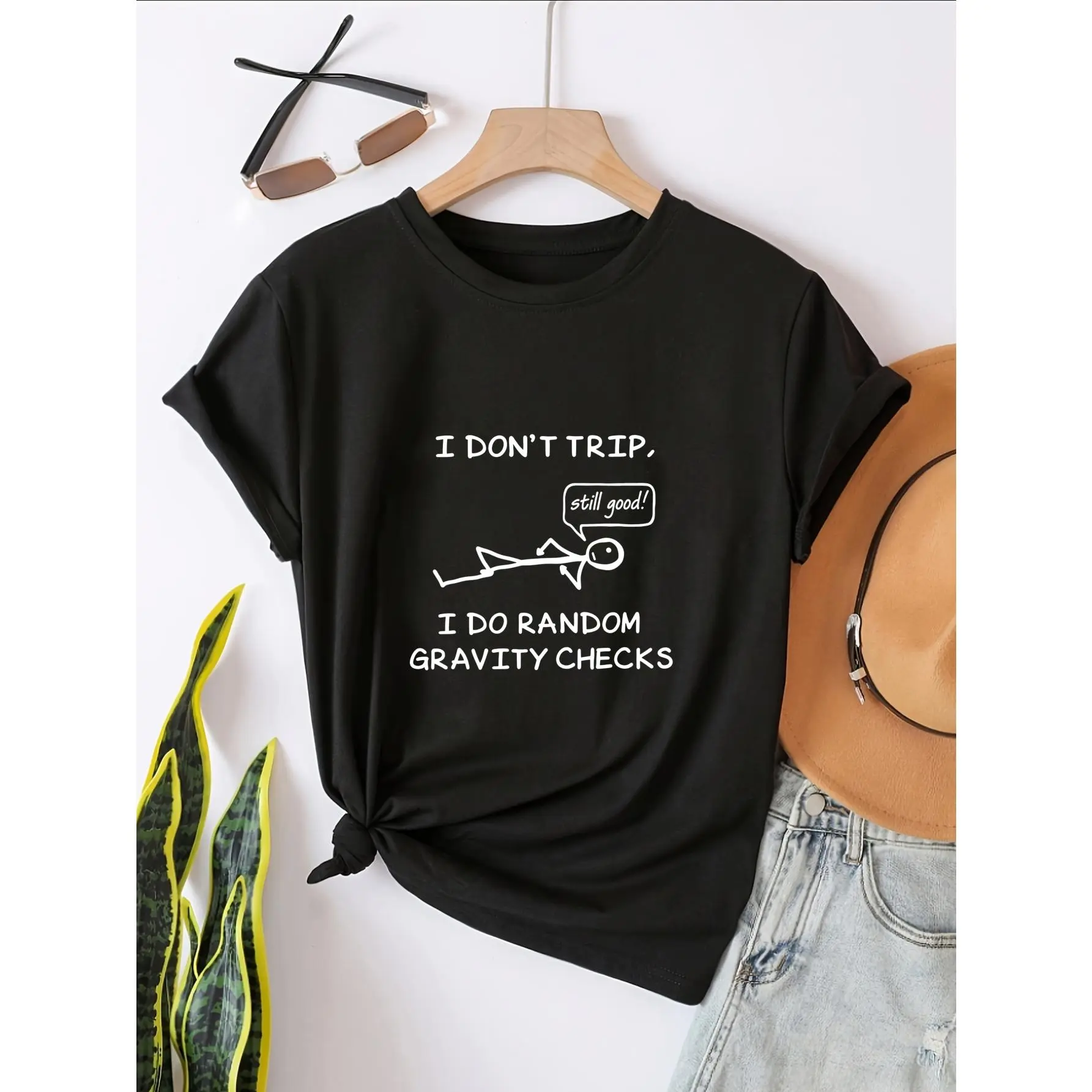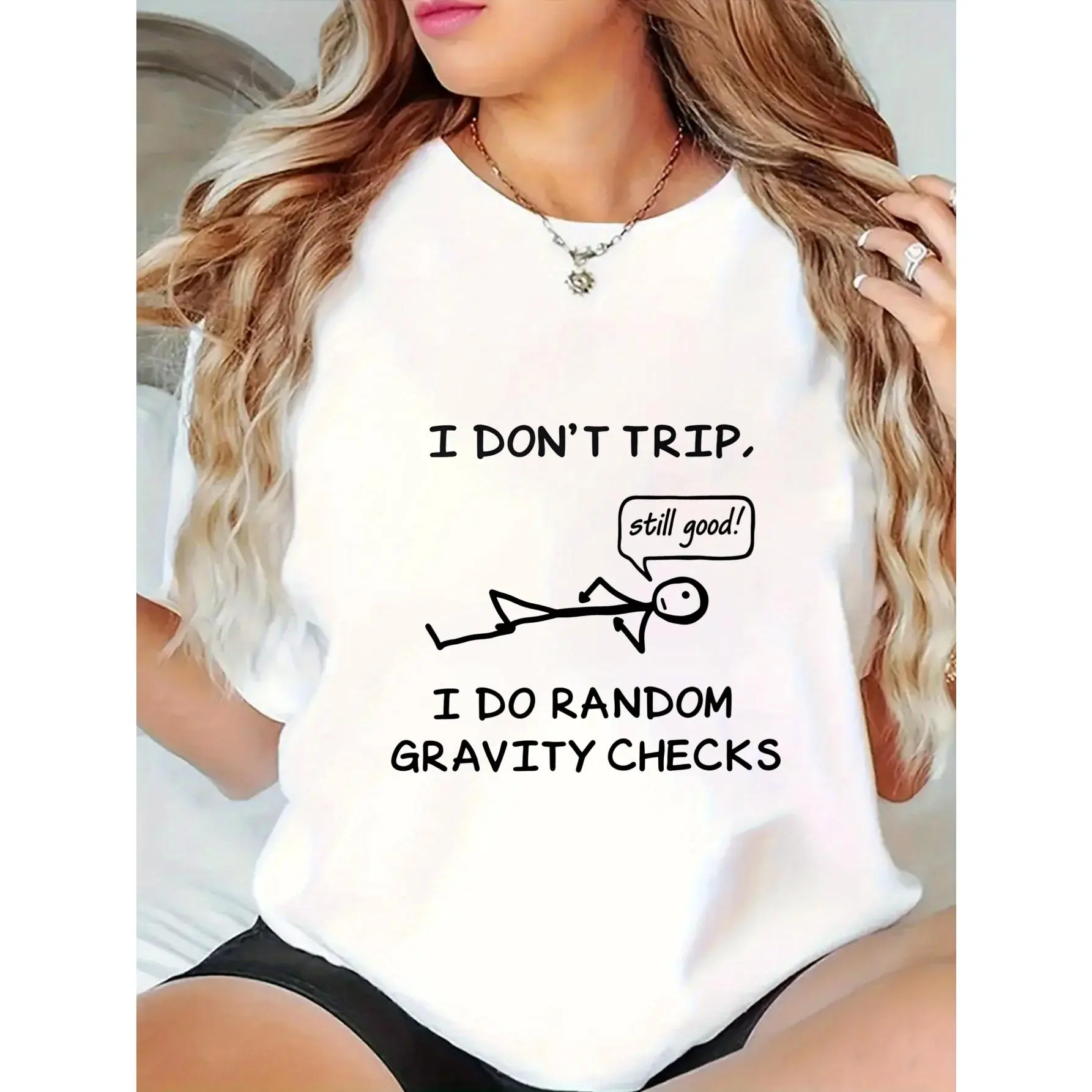 1 PCS Graphic T Shirt for Women Short Sleeve Summer Tops Funny Letter Printed Loose Casual Crew Neck Tees Summer Tops I Don't Trip I Do Random Gravity Checks Womens Summer Short Sleeve Shirts Beach Vacation Cutton