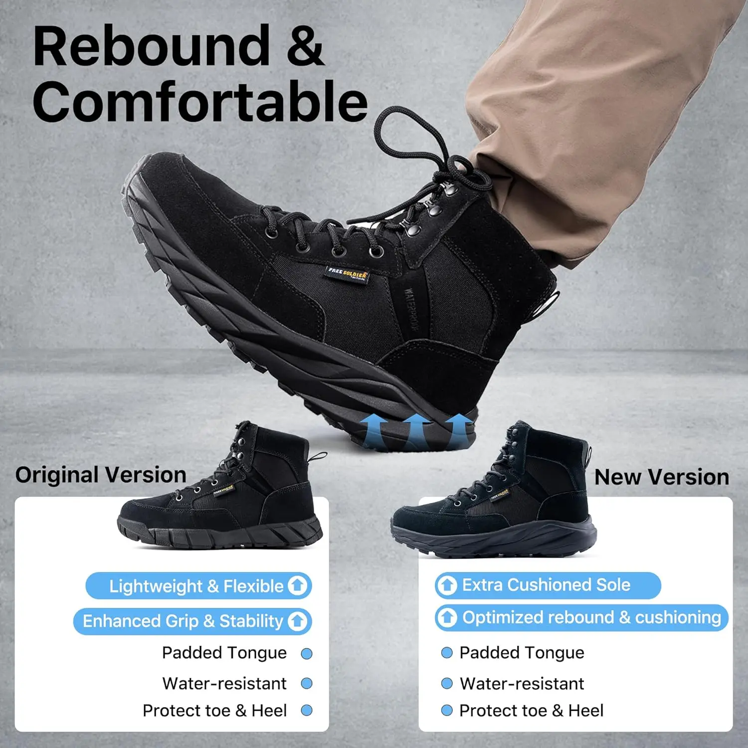 FREE SOLDIER Men's Durable Work Boots 6 Inches Lightweight Waterproof Hiking Boots Suede Leather Tactical Boots