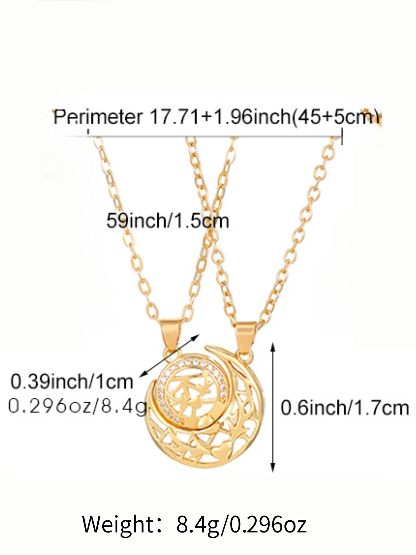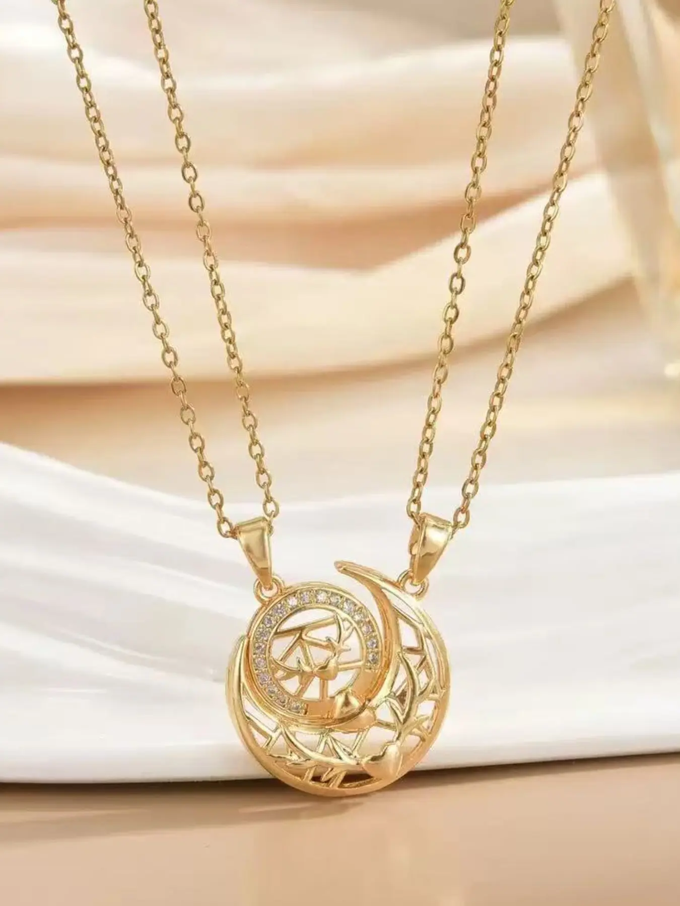 Trendy Gold Sun Moon Necklace Set, Dainty Celestial Pendant with Interlocking Design, Stylish Boho Choker for Girlfriend Wife, Perfect Valentine's Day Gift