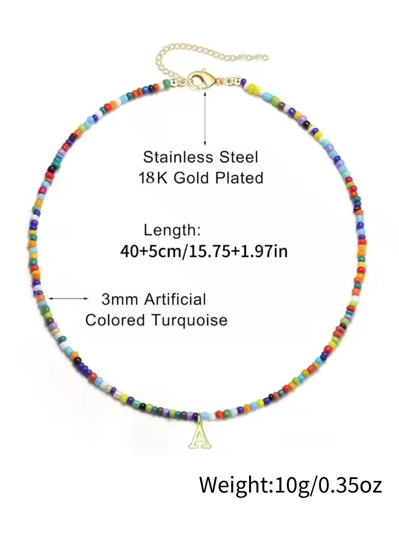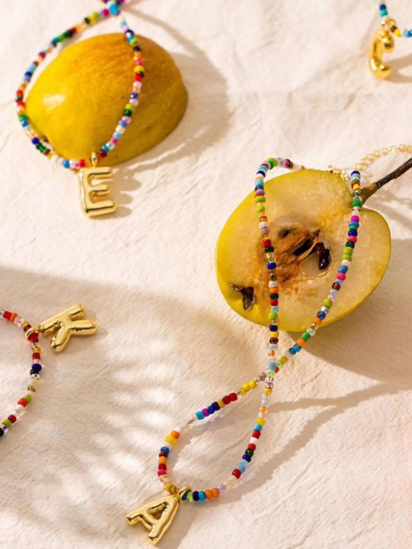 Women's Colorful Letter Necklace, Bubble Initial Necklace, Handmade Beaded Jewelry, Bohemian Beach Style, Perfect Gift, High-Quality Fashion Accessory