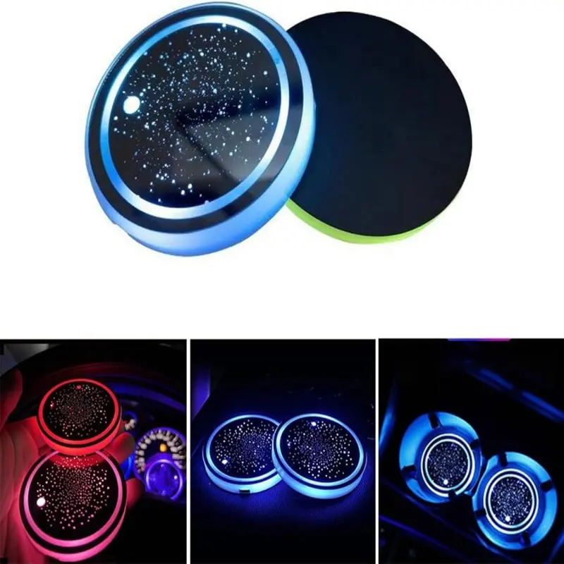LED Cup Holder Light USB Rechargeable, 7 Color Changing Glow Interior Car Accessory, Non-Slip Cup Tray Ambient Lamp, Teenage Car Parts