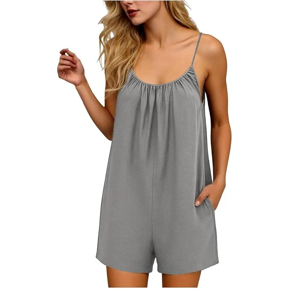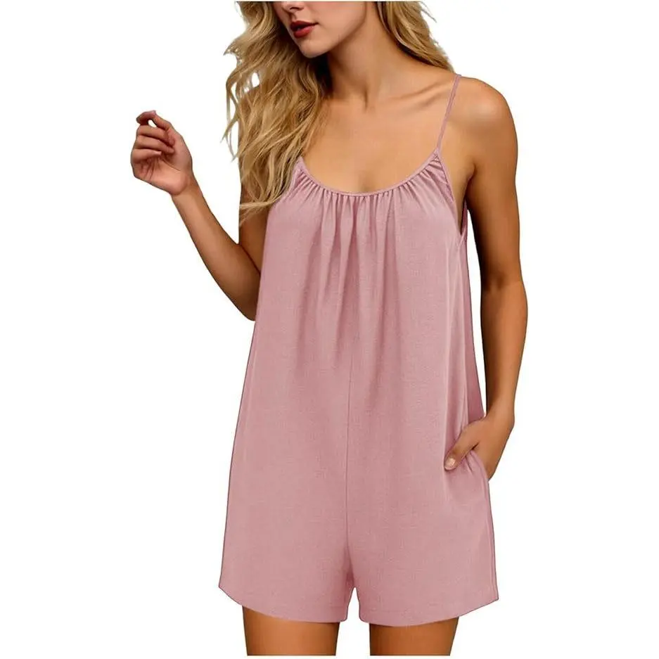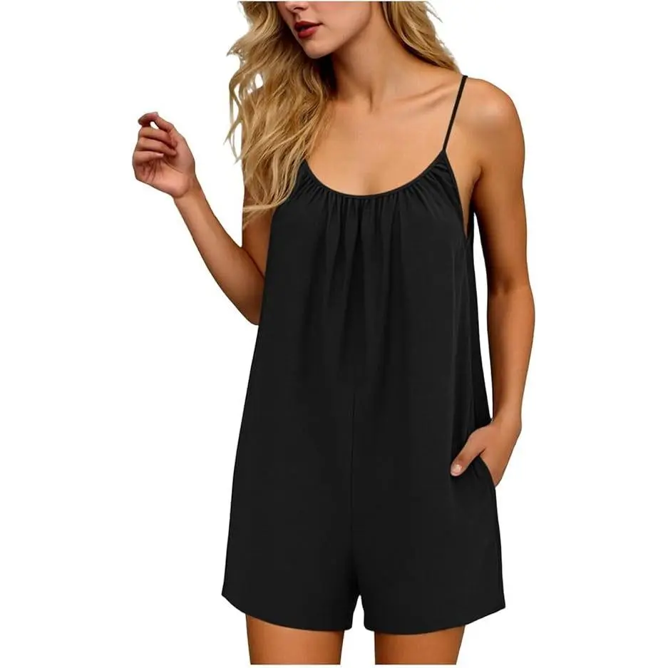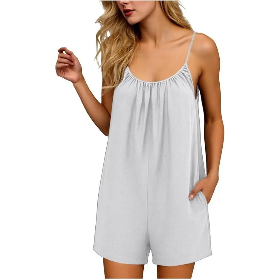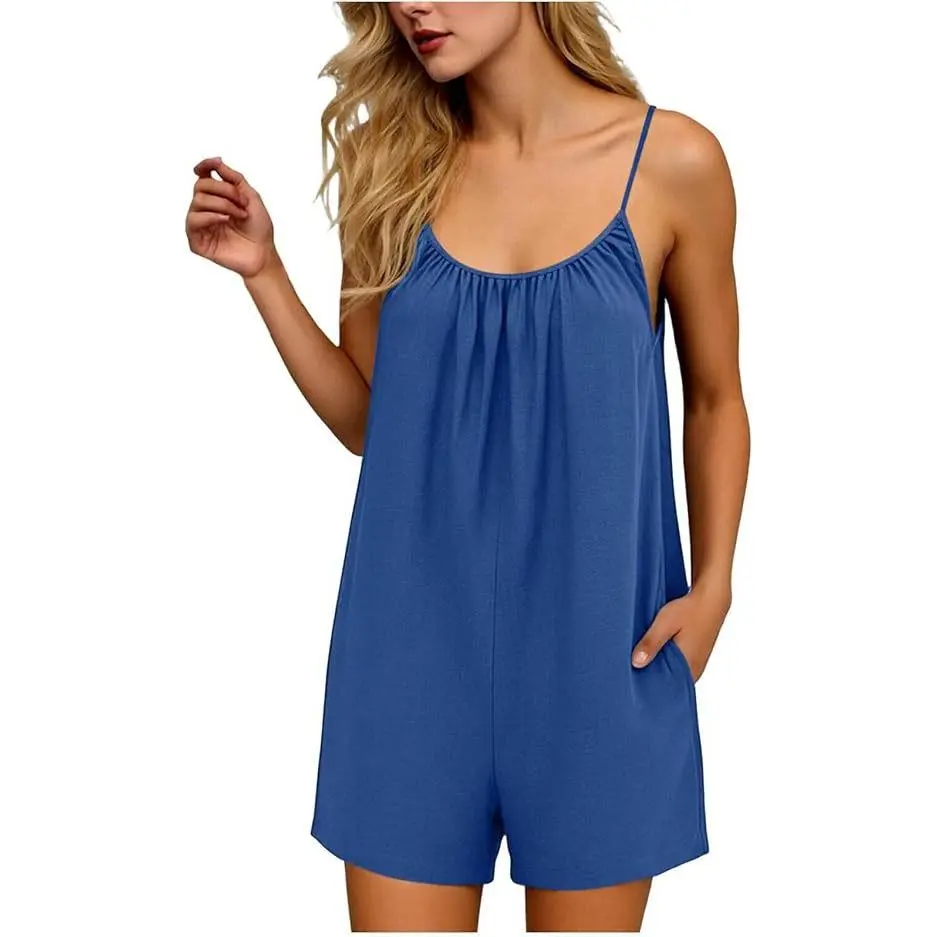 Rompers for Women Summer Sleeveless Scoop Neck Tank Top Casual Short Jumpsuit Rompers with Pockets