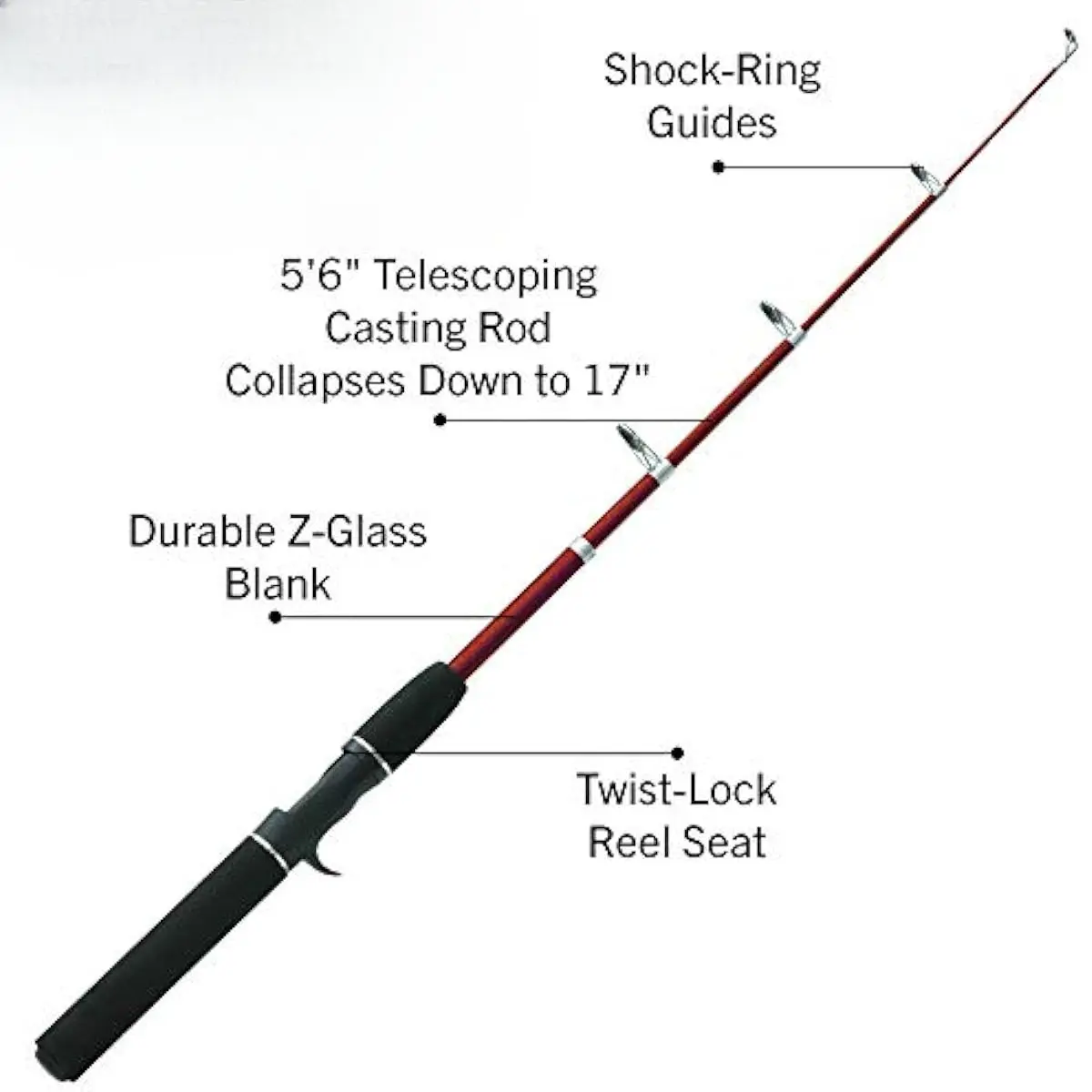 ALL-DAY COMFORT: Z-Cast casting rod extends from 17-inches to 5-foot 6-inches for easy on-the-go storage and travel. The telescopic fishing pole features a balanced EVA rod handle that reduces grip-fatigue so you can fish comfortably for longer