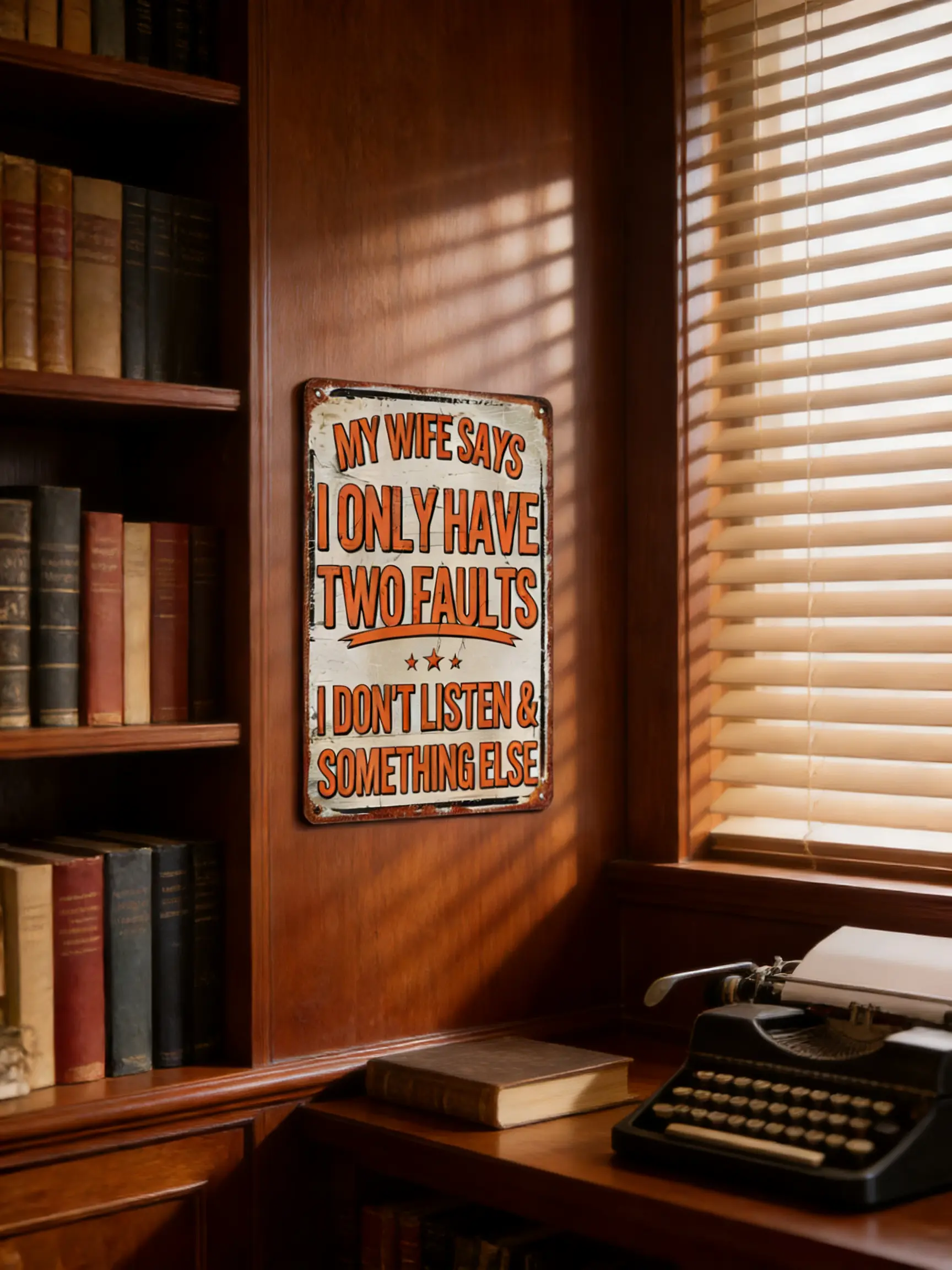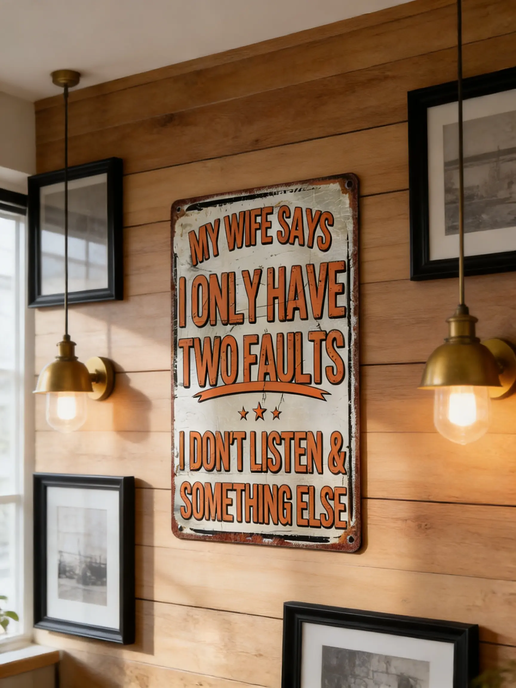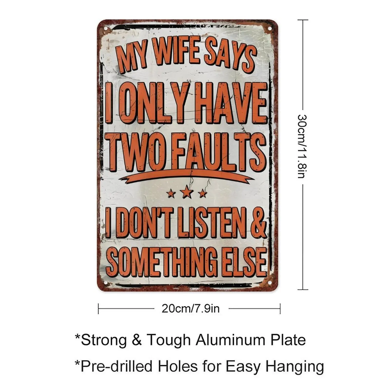 Funny "My Wife Says I Only Have Two Faults" Vintage Metal Tin Sign, 8"×12" (20×30cm) Humorous Man Cave Wall Decor, Perfect Gift for Husbands, Fathers, Home Bar DecorFunny "My Wife Says I Only Have Two Faults" Vintage Metal Tin Sign, 8"×12" (20×30cm) Humorous Man Cave Wall Decor, Perfect Gift for Husbands, Fathers, Home Bar Decor