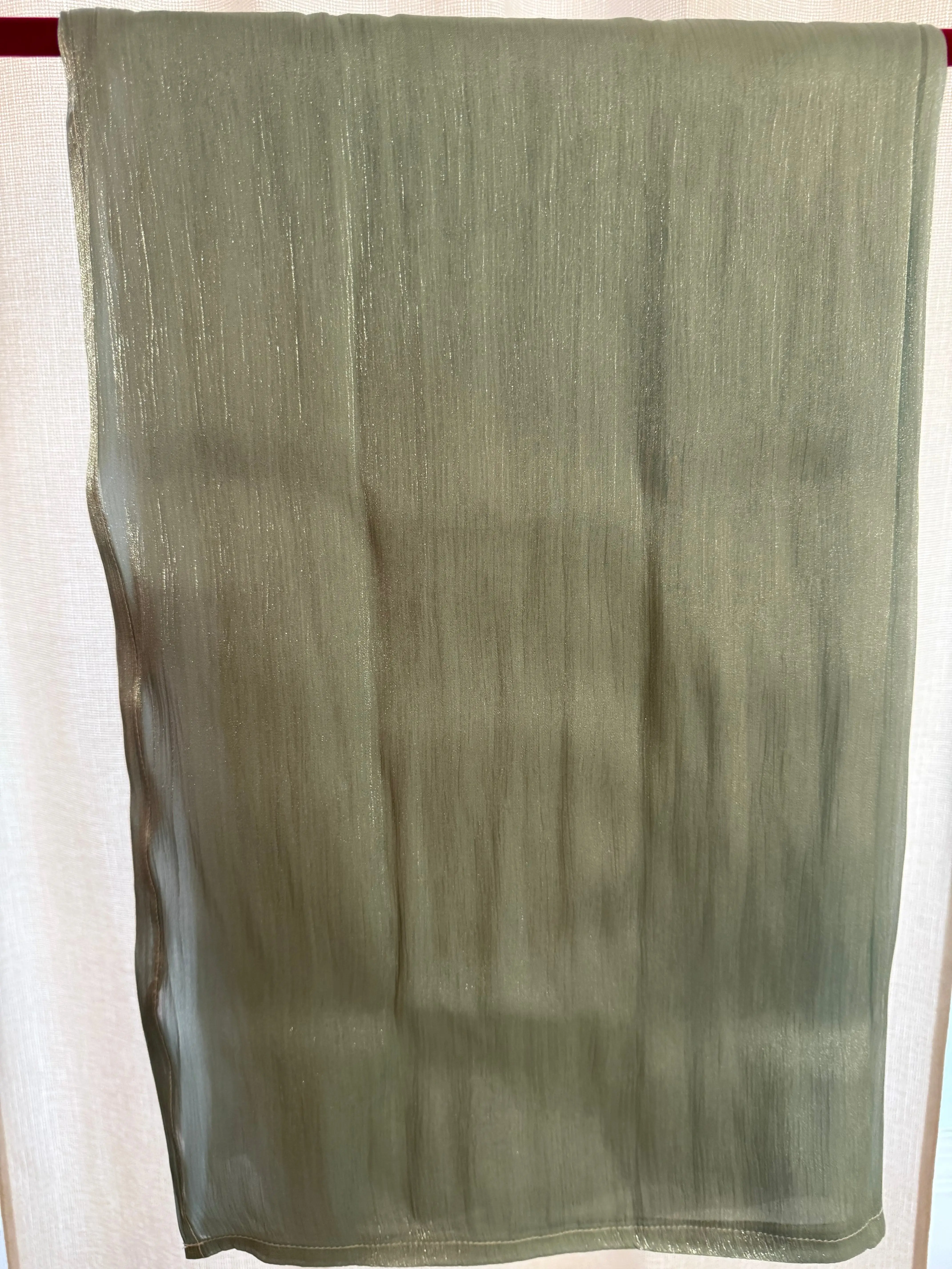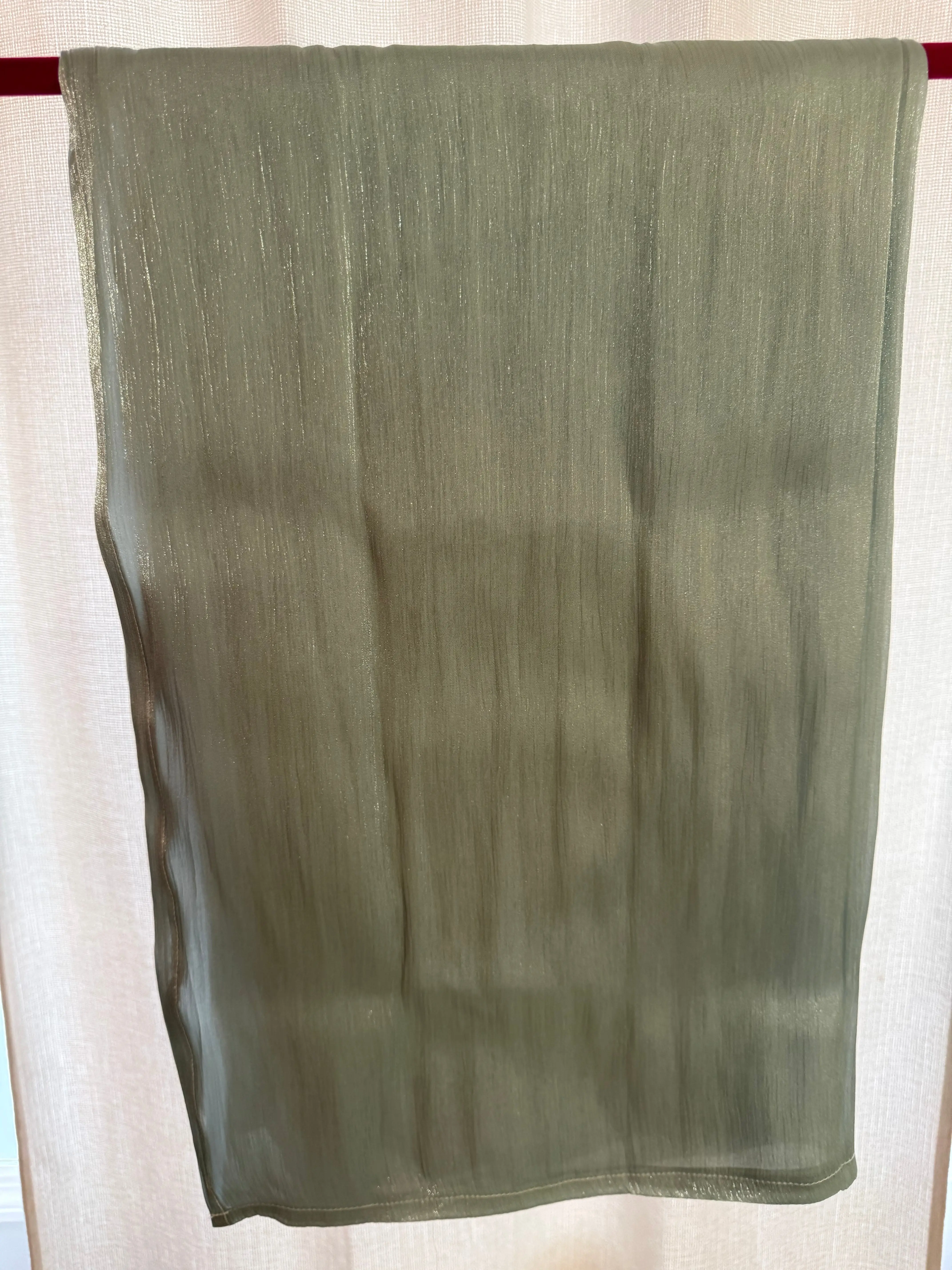 Elevate your look with a touch of ethereal glow. Our Shimmer Chiffon Hijab is designed for the woman who loves subtle luxury. This isn't just a basic scarf; it features a delicate, vertical metallic weave that catches the light with every movement, creating a sophisticated "liquid metal" effect.