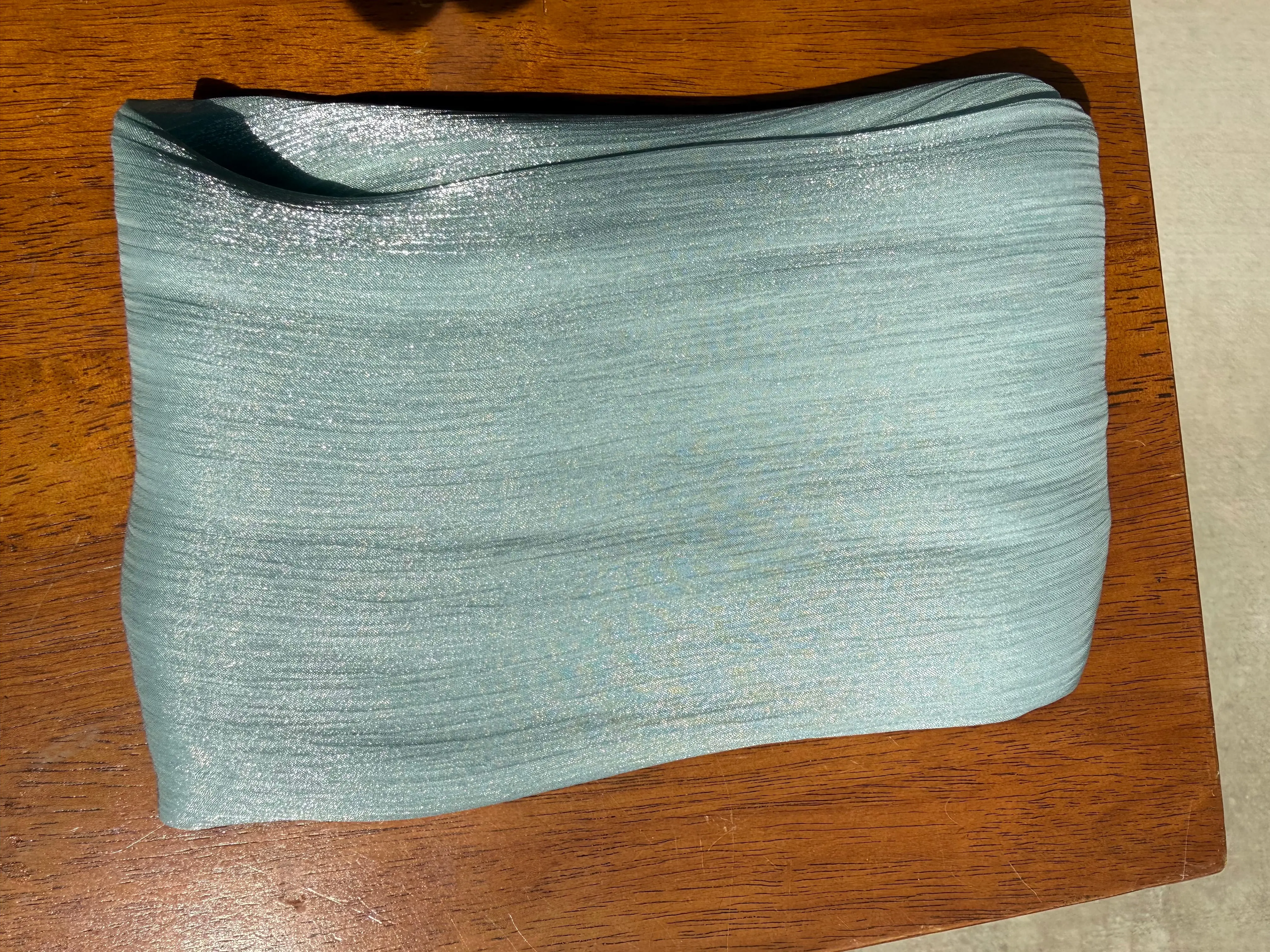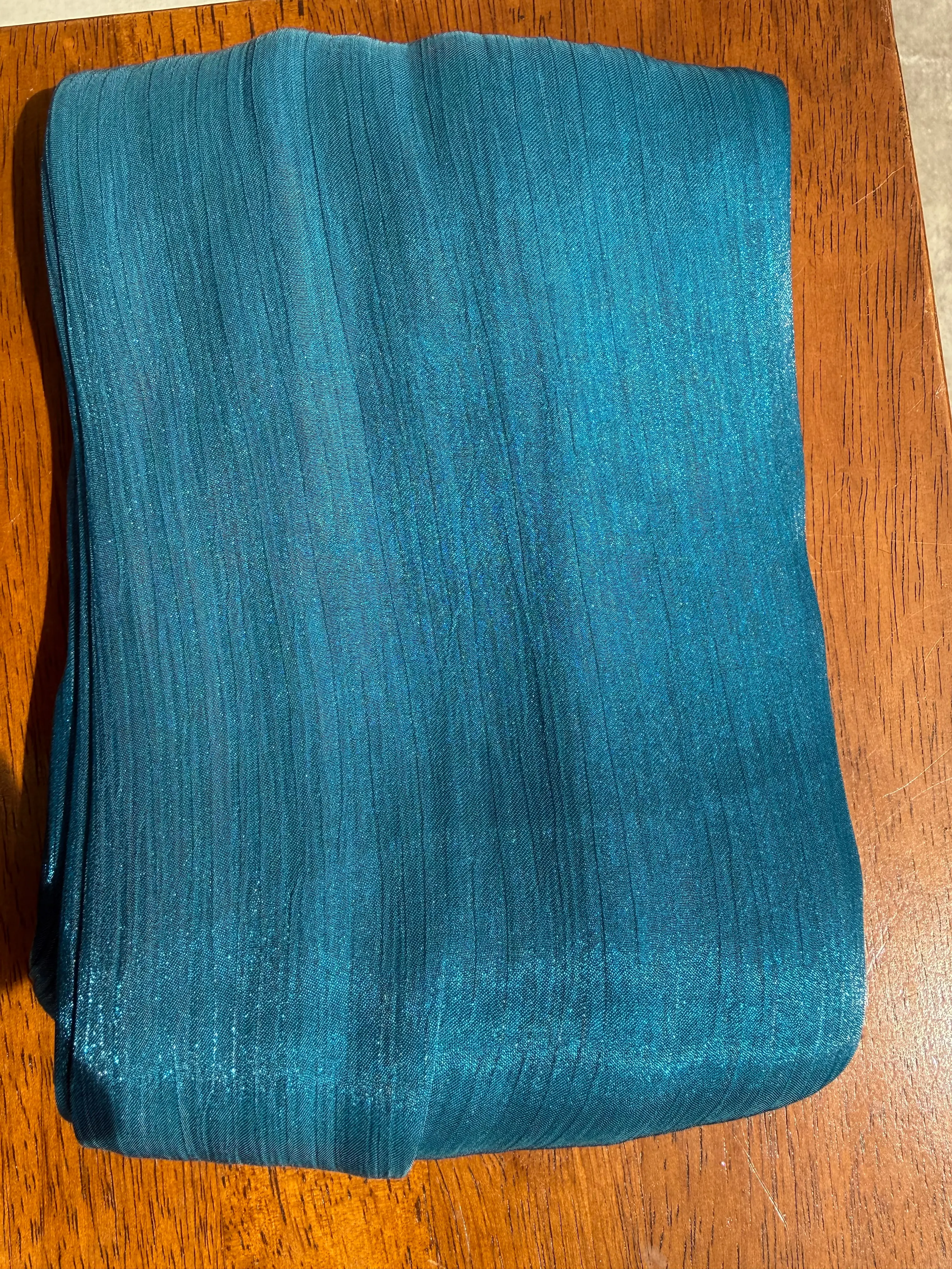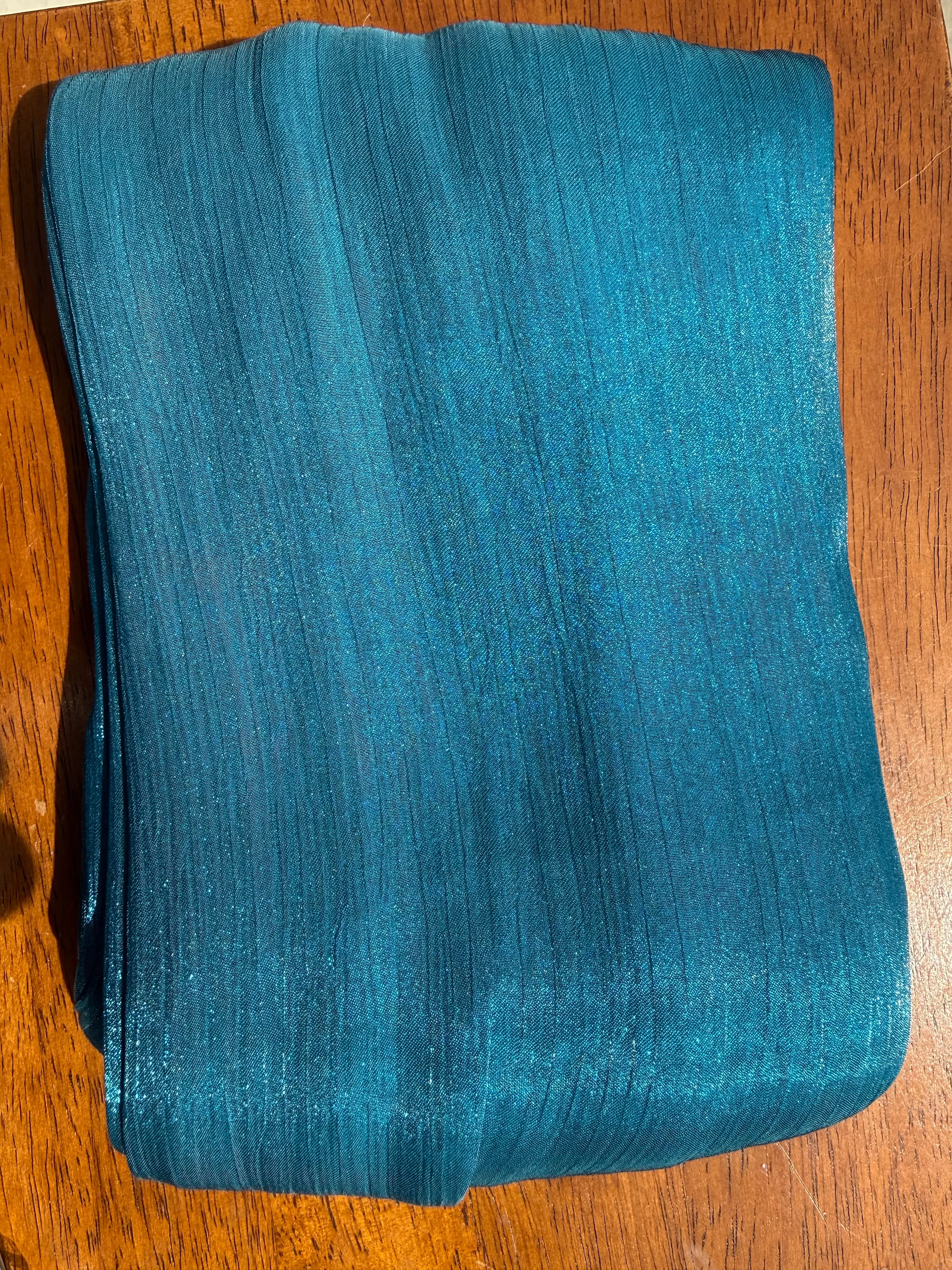 Texture: Fine, crinkle-chiffon base with integrated shimmering Lurex threads.