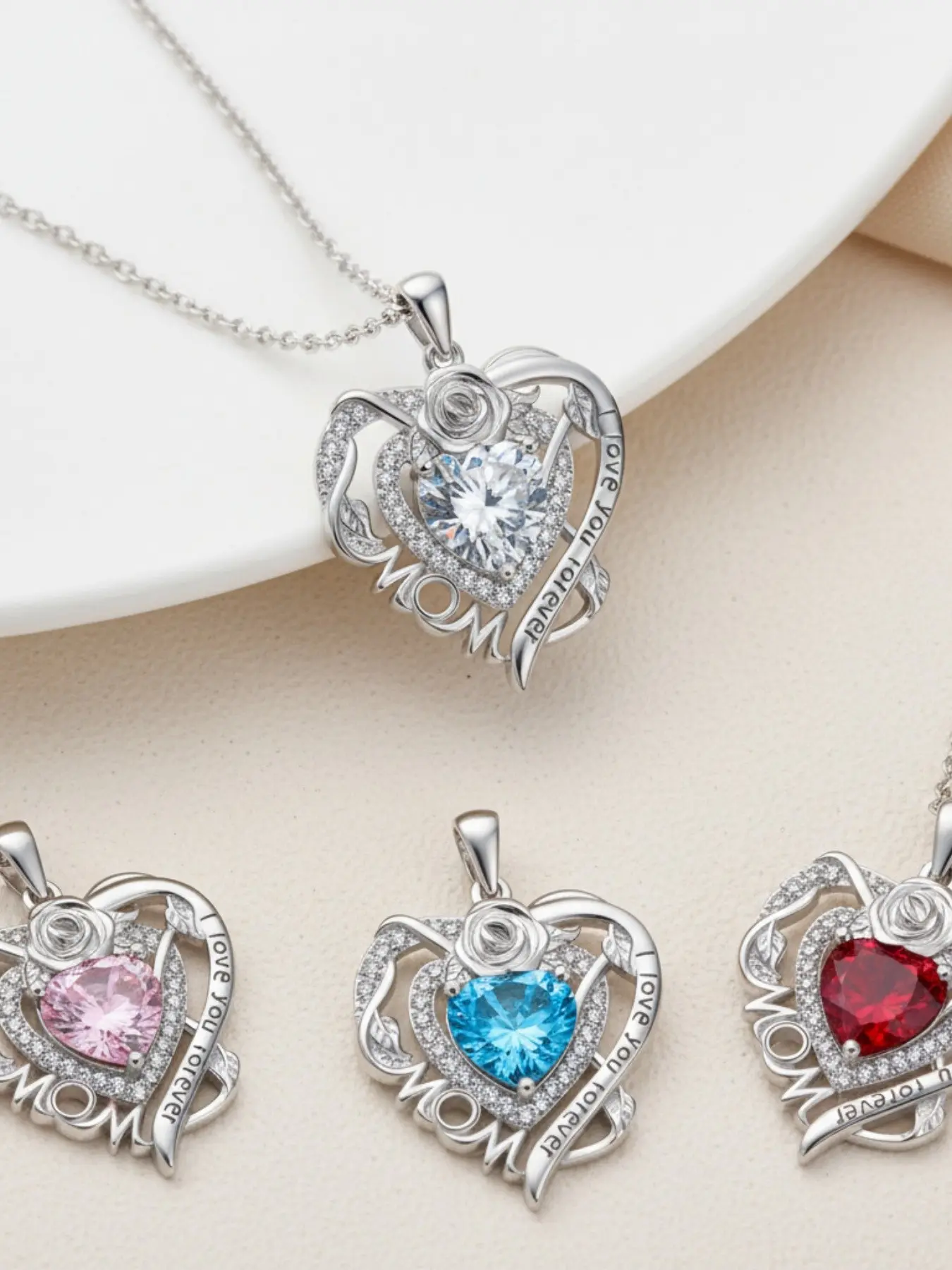 Rose Heart Forever Mom Original heart-shaped rose pendant, luxury premium gem necklace.Paired with a preserved rose & teddy bear jewelry gift box.Perfect mysterious gift for festivals, birthdays, Valentine's Day, Mother's Day and Christmas.