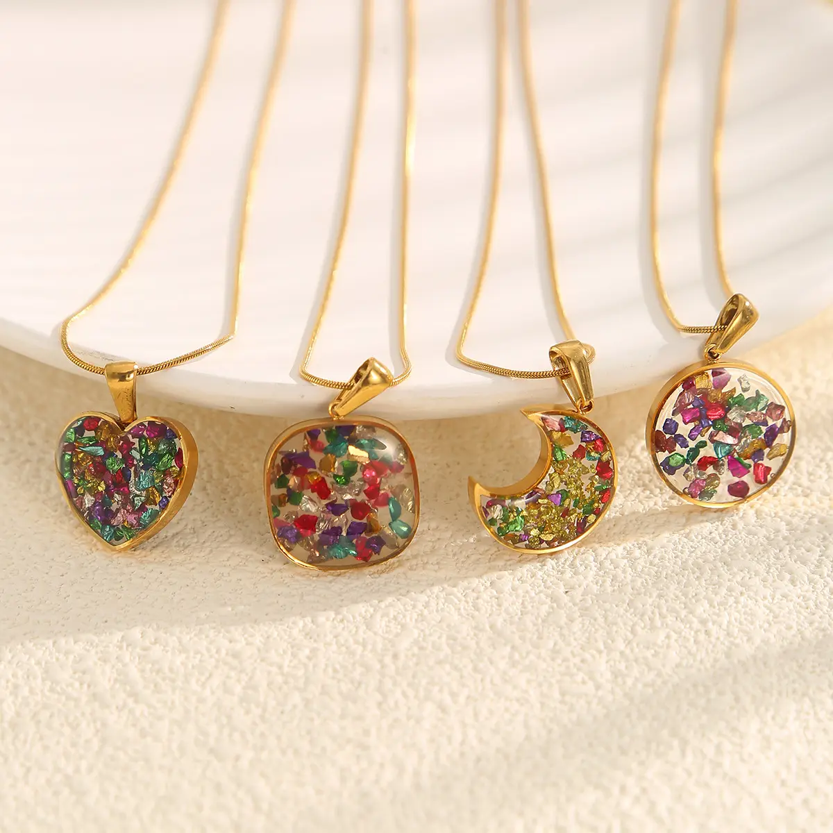 Cross-border jewelry necklace wholesale resin heart pendant necklace for women stainless steel jewelry light luxury heart-shaped collarbone necklace