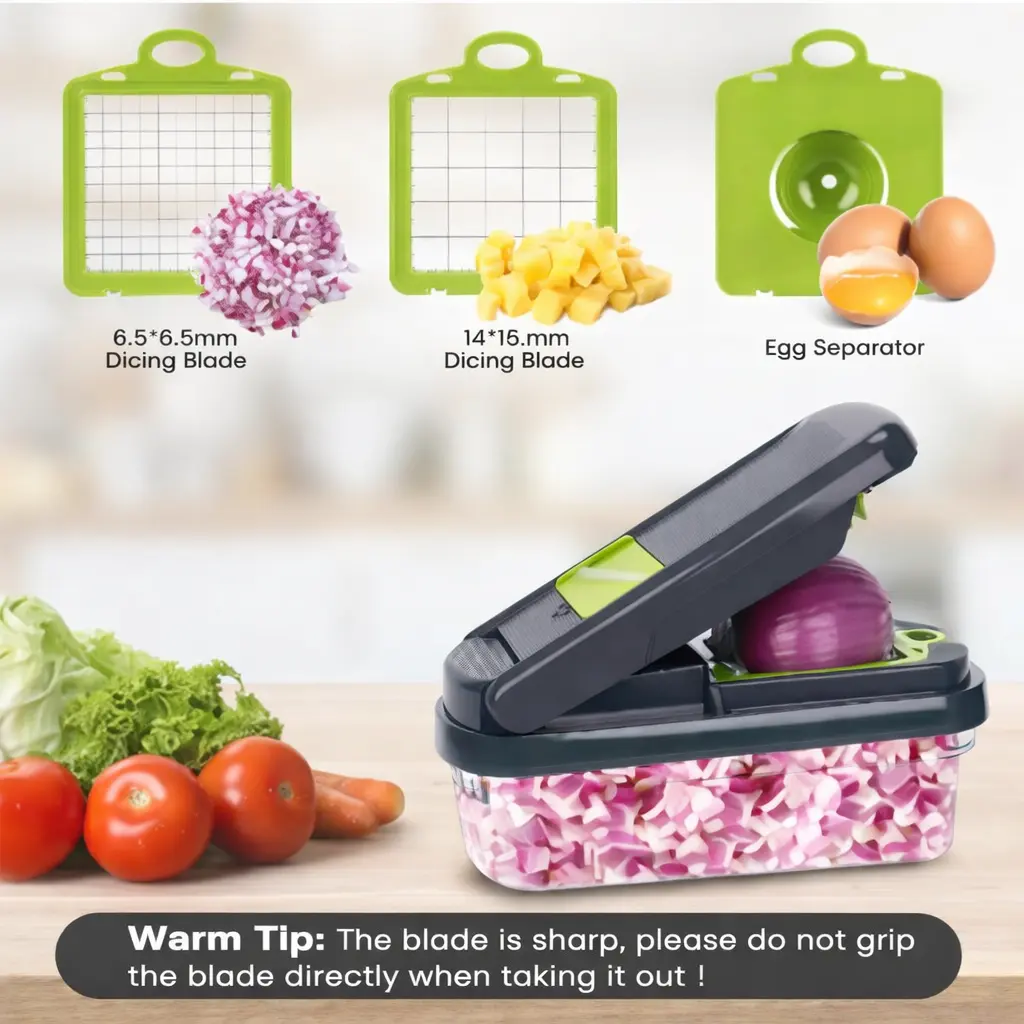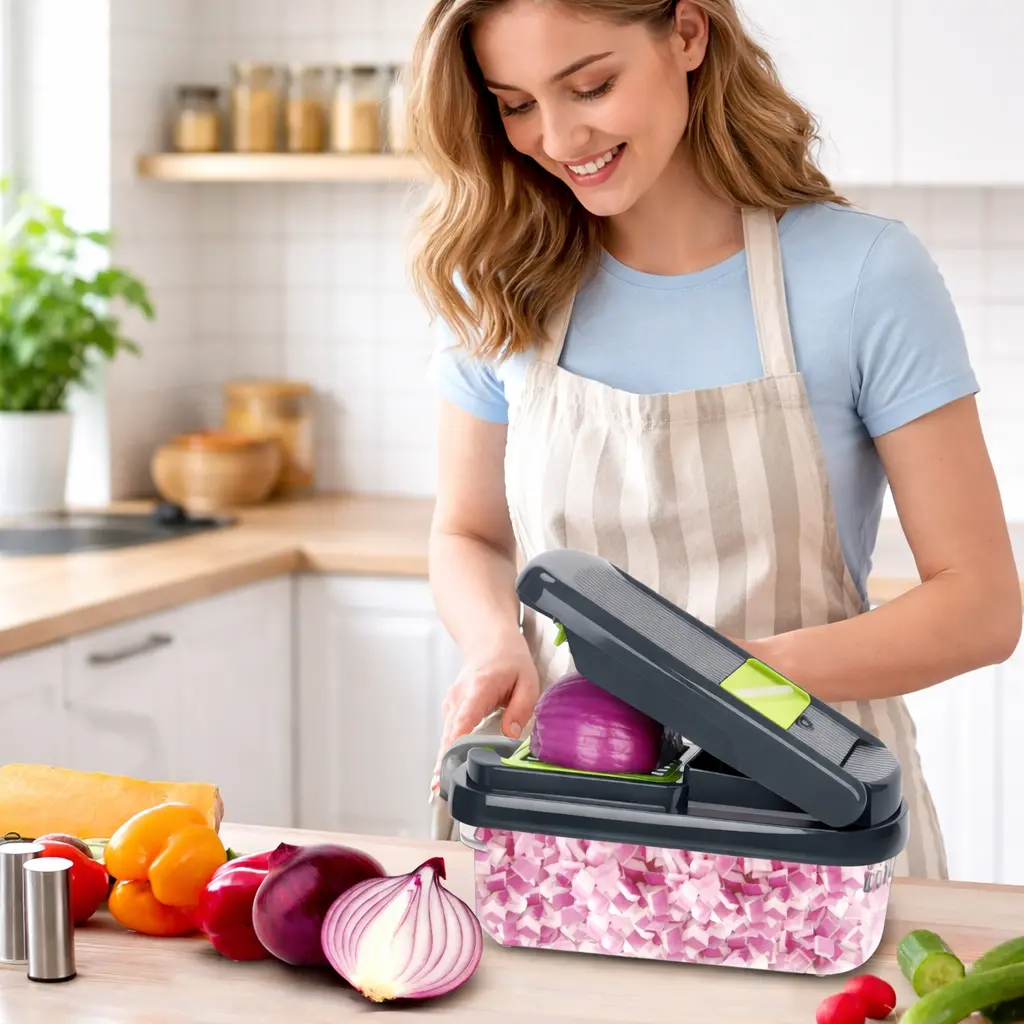 Upgrade your kitchen game with this all-in-one vegetable chopper that makes meal prep quicker, safer, and effortless. Whether you're slicing potatoes, dicing onions, or prepping salads, this tool does it all in seconds!