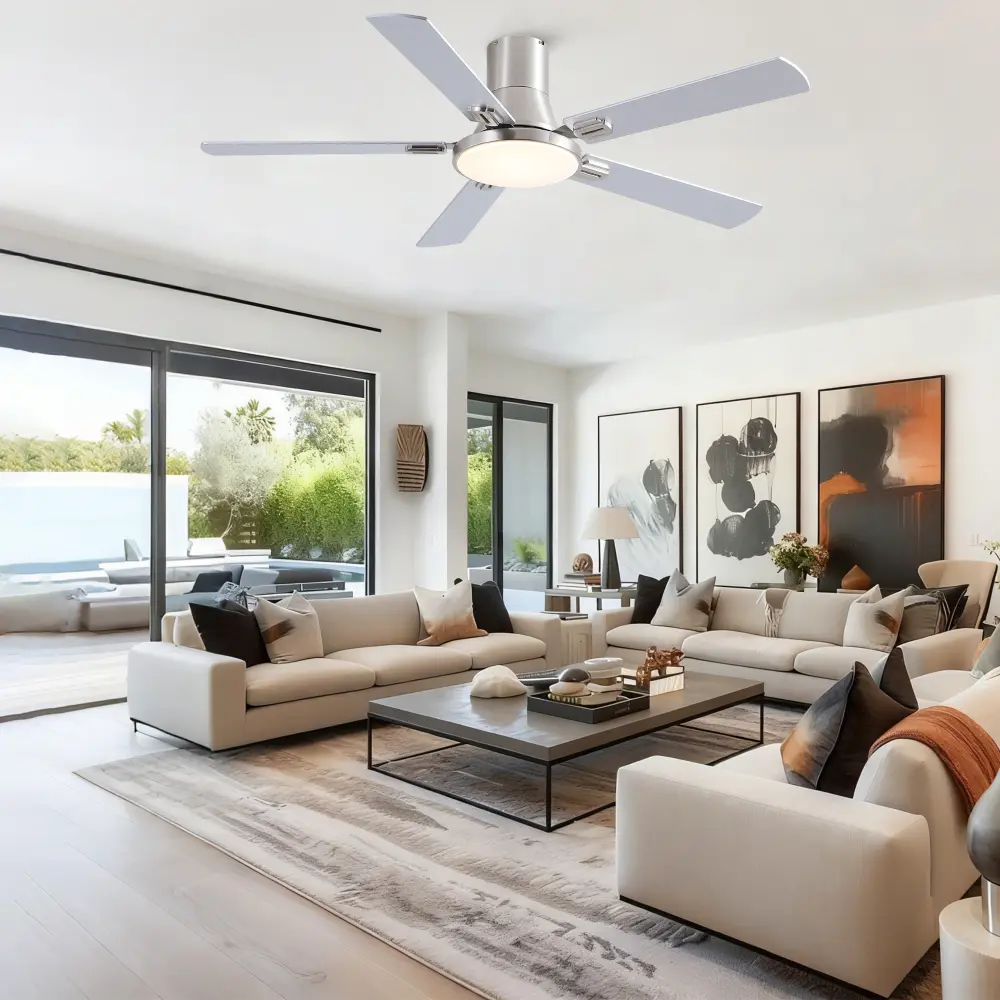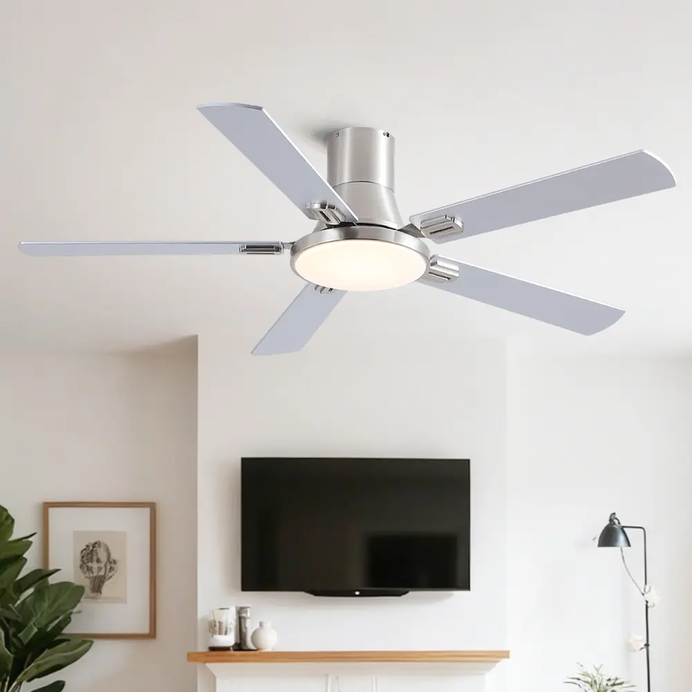 52 inch Mordern Brushed Nickel Flush Mount Ceiling Fan with Light and Remote Control