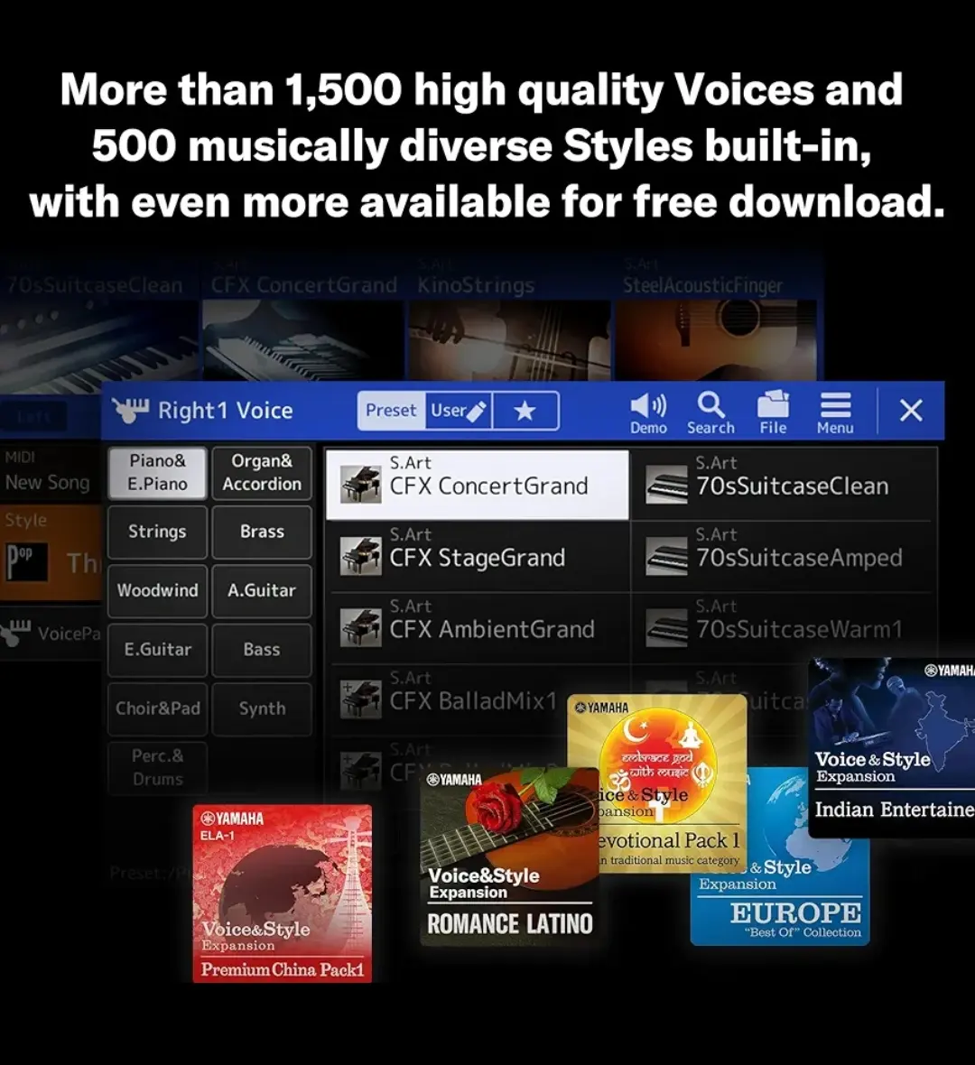 Experience unparalleled performance with the PSR-SX920, featuring select premium content from the flagship GENOS2 arranger keyboard. Enjoy immersive sound through its advanced bi-amped speaker system and wide stereo audio field. Navigate effortlessly with the 7-inch TFT touch screen or quickly access functions using customizable buttons. Enhance your music with features like a joystick controller, Chord Looper, flexible time signatures, doubled expansion memory, a new 128-note drum, and Style Section Reset. Elevate your performances and achieve superior sound with the PSR-SX920.