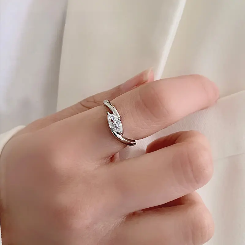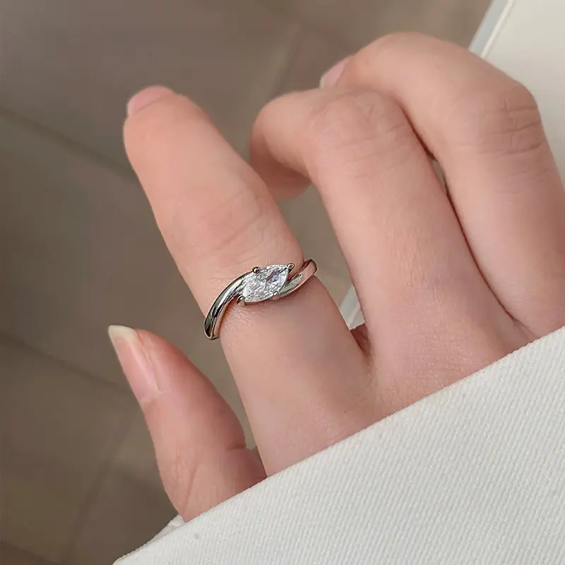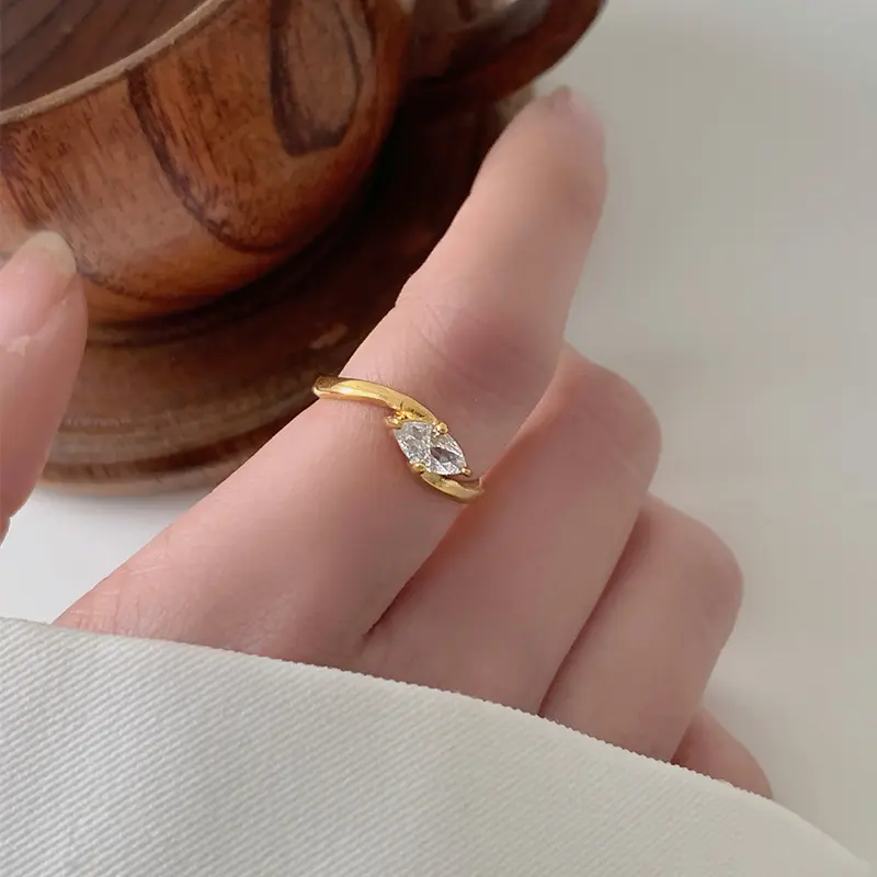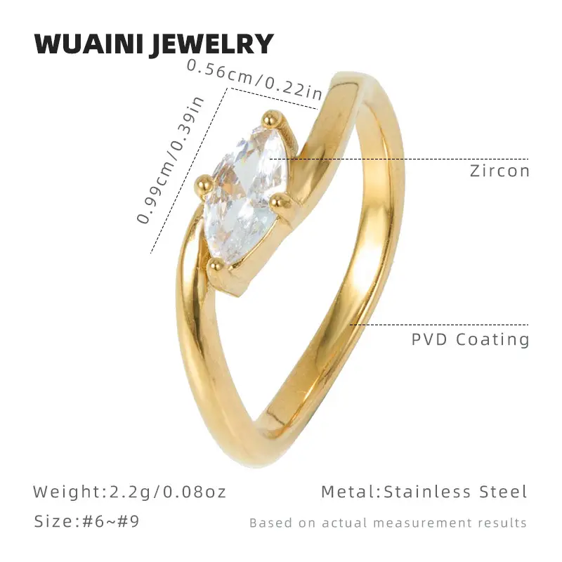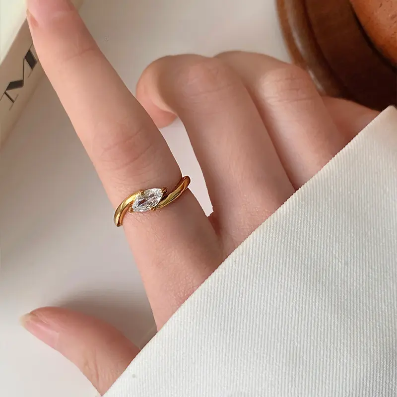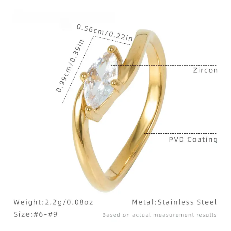 Elegant Golden Marquise Cut Solitaire Ring for Women, Sparkly Zircon Stainless Steel Promise Ring, Minimalist Wedding Engagement Anniversary Jewelry Gift