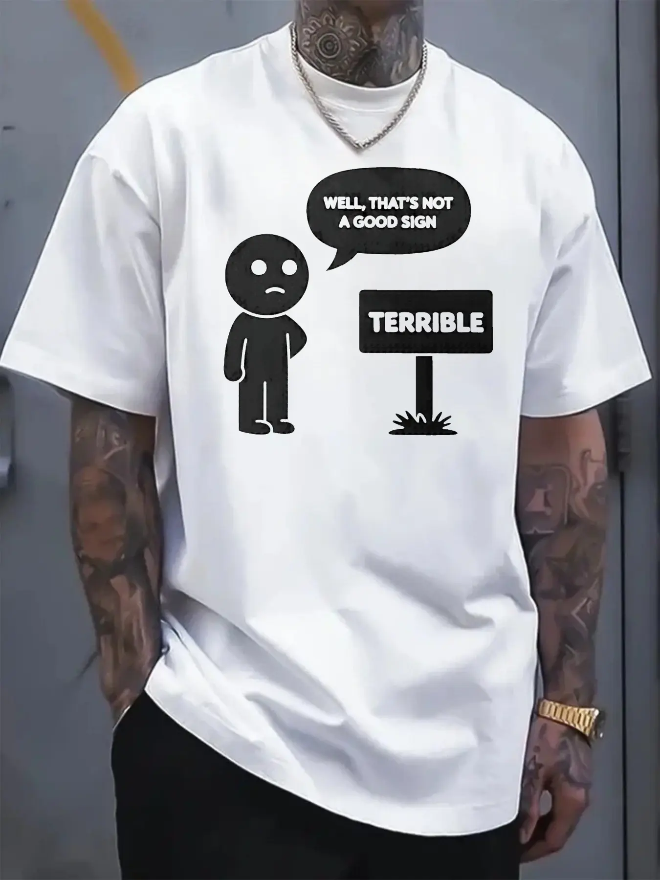 Men 's T-shirt Funny cartoon character dialogue print text WELL THATS NOT A GOOD SIGN TERRIBLE casual trendy street style