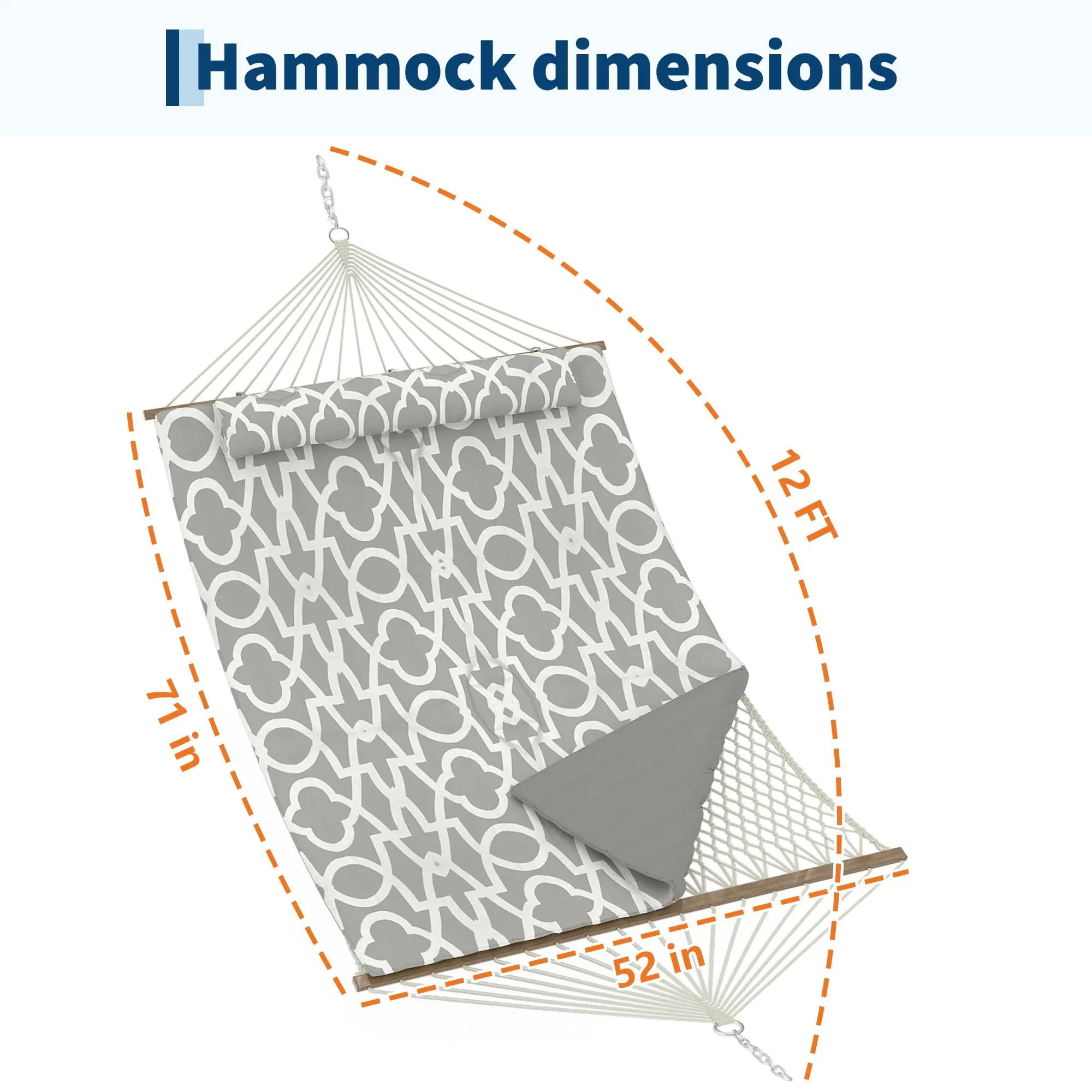 ·Additional Features: Includes spreader bars to keep the hammock open and a removable pillow for neck or back support, enhancing your lounging experience.