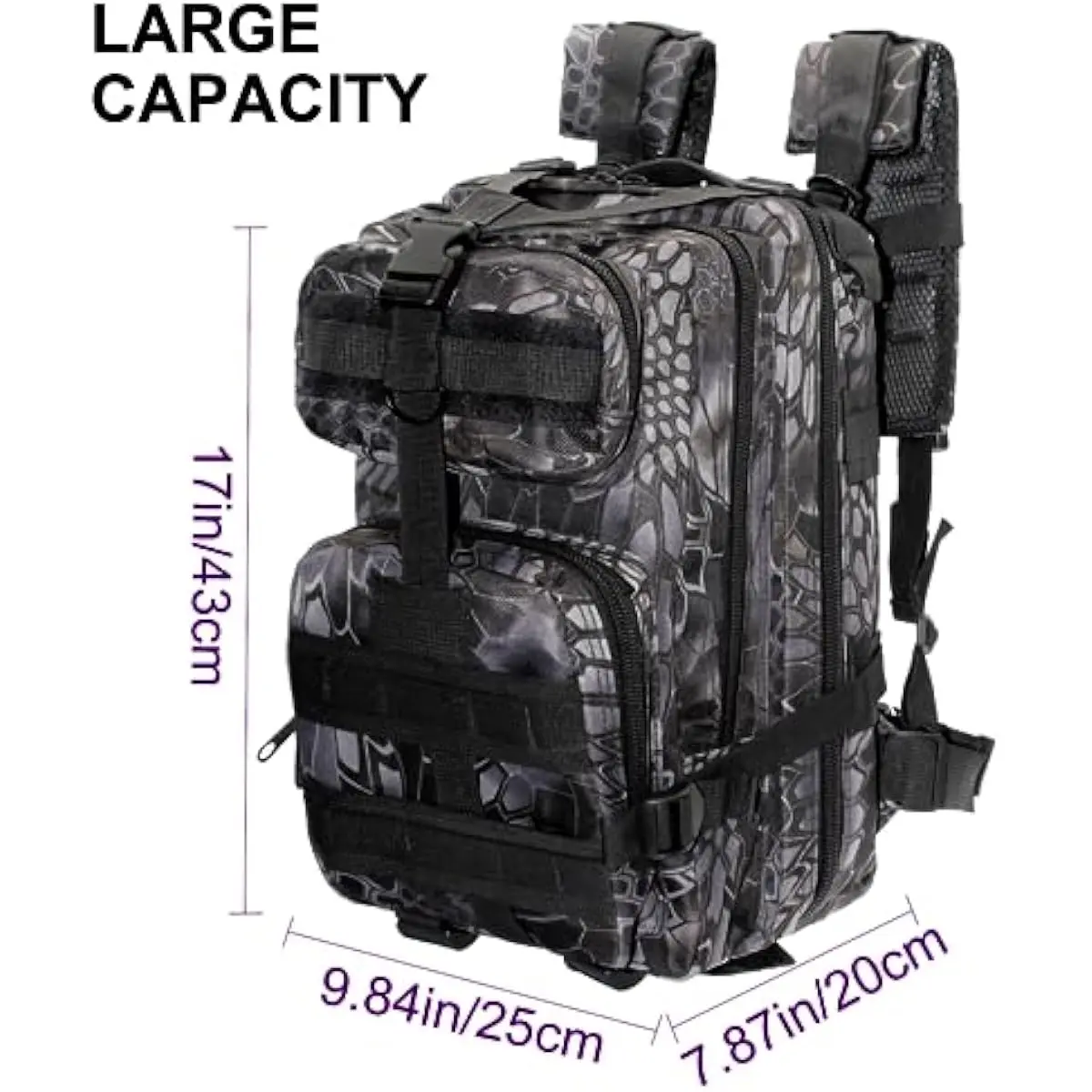 LARGE CAPACITY STORAGE DESIGN: You will receive the fishing gear backpack with the size of 24*20*43cm, which allows you to carry more fishing gear supplies. The fishing gear storage backpack has 4 large pockets and multiple built-in pockets, the molle net on the front of the fishing backpack can be used to store pliers, scissors and other tools, which is convenient for you to access in time.