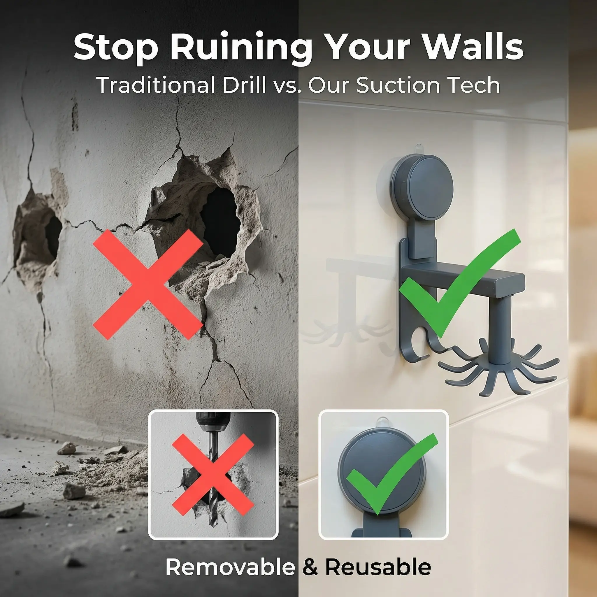 Tired of drilling holes in your rental walls that you’ll have to patch later? Sick of flimsy adhesive hooks that fall off and leave sticky residue? Meet your new go-to home organization hero: the Ultimate Damage-Free Suction Hook Rack — made for renters, apartment dwellers, and anyone who wants a clutter-free space without the DIY headache!