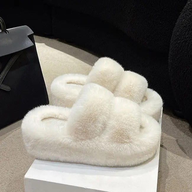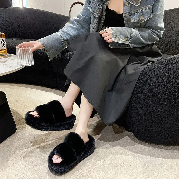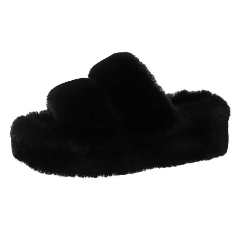 Women's Plush Open-Toe Mule Slippers with Thick Sole - Comfortable & Warm for Home & Casual Outings