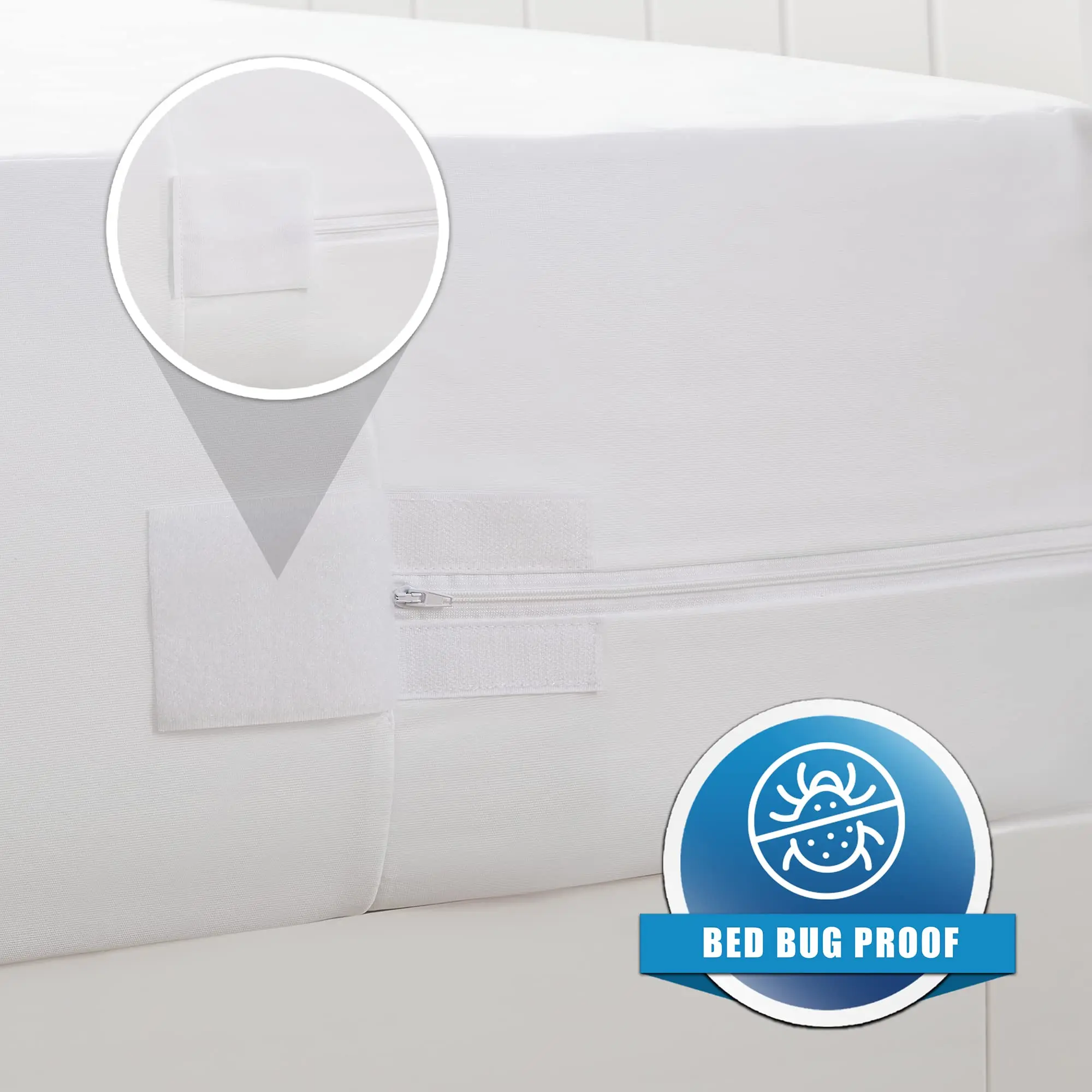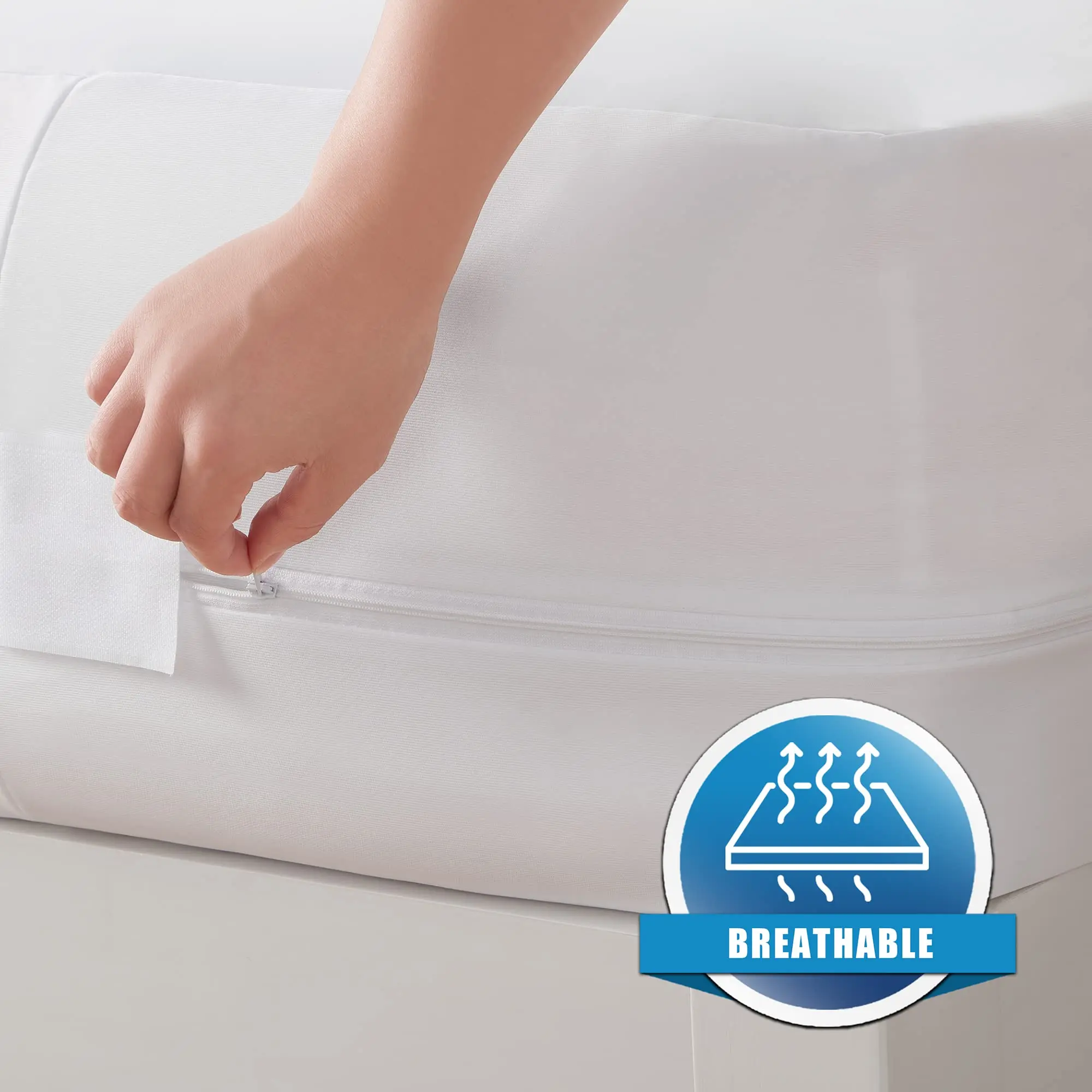 BED BUG PROOF: The zippered closure and fitted fabric keeps your bed covered for protection from unwanted creepy crawlies. Hypoallergenic seal keeps your mattress long lasting.