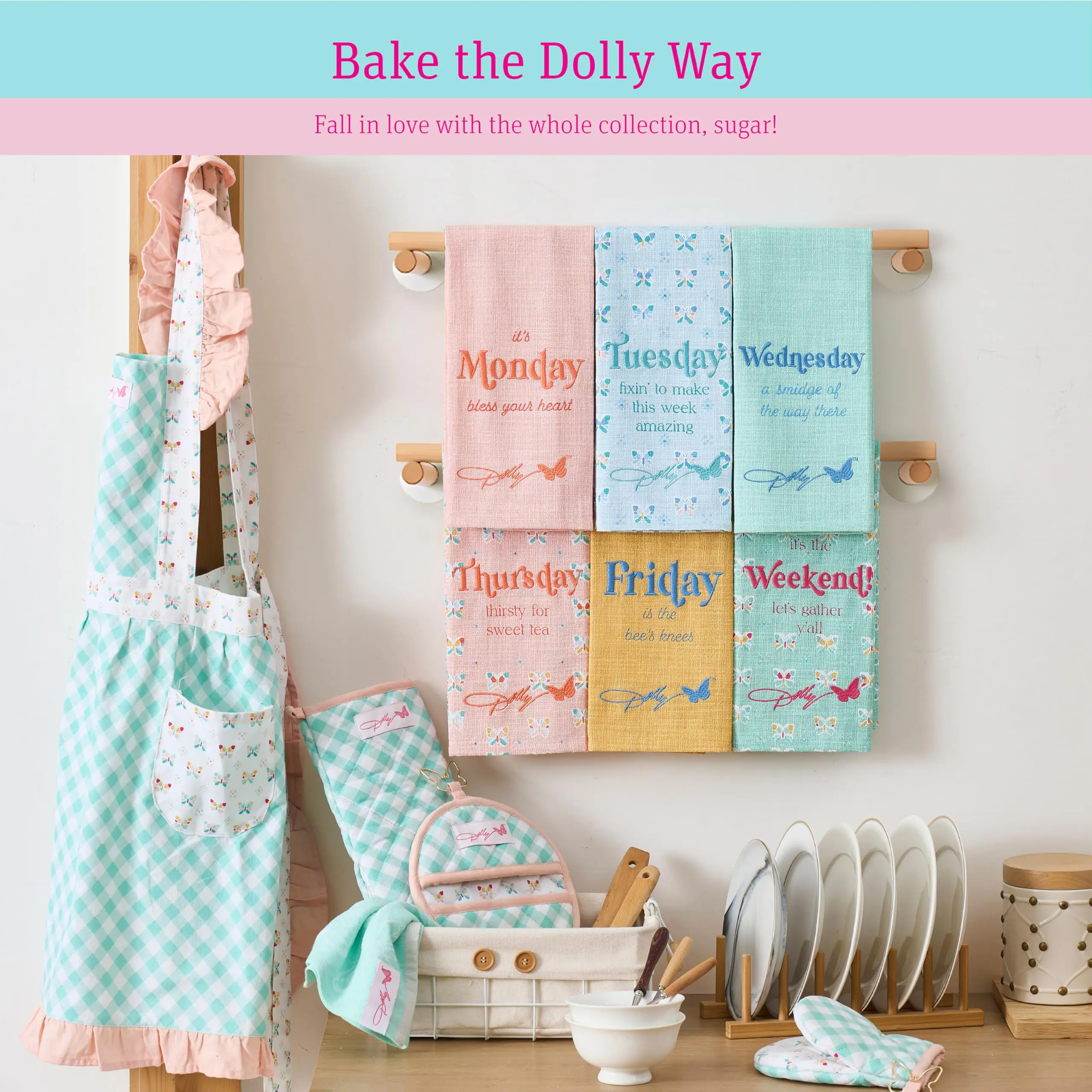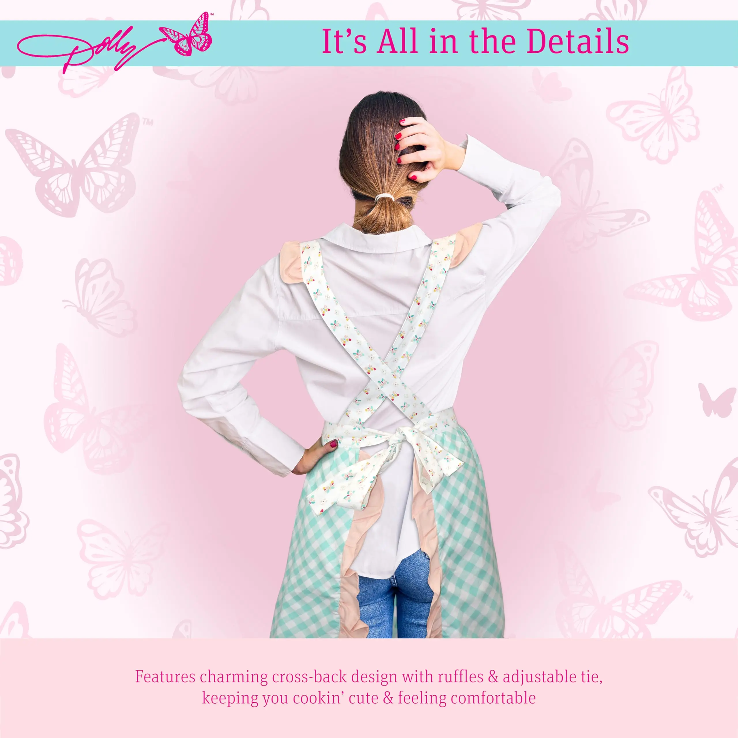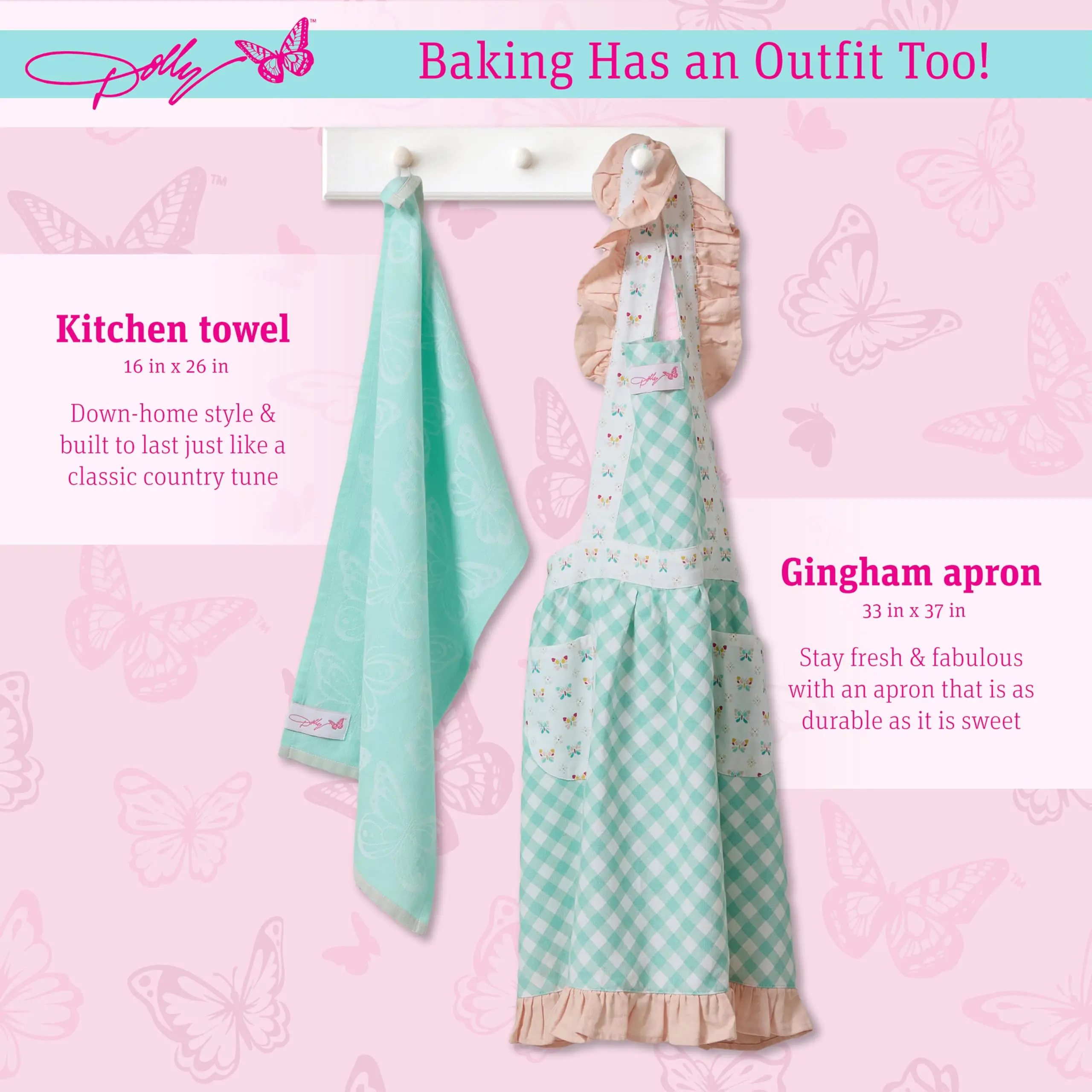 DESIGNED IN LOVE: This set includes cute and stylish whimsical teal green plaid, pink frills, and butterfly patterns on the apron and inverted teal green butterfly pattern on the kitchen towel bringing a touch of Dolly Parton's country cheerful spirit to you and Southern hospitality to your friends and family. Perfect as a Dolly Parton gift.